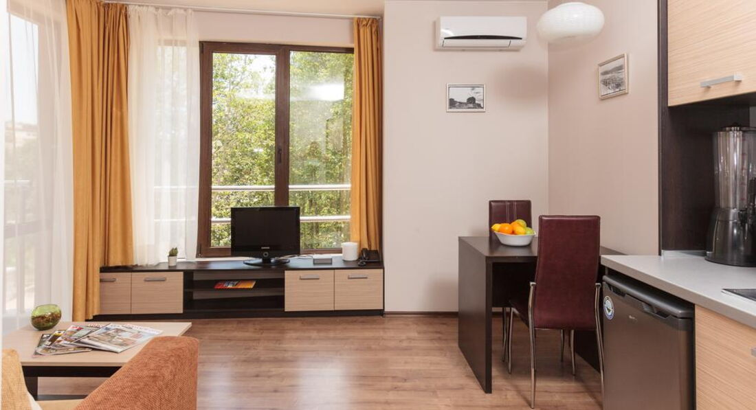 Очень хороший, уютный отель для семейного отдыха.Большое преимущество- удаленность от центра.Если нужна тусовка-1 лев на автобусе(20 руб.) и ты в центре событий.А так все тихо и спокойно.Во дворе маленький ресторанчик.Можно чудесно проводить вечера.Кухня хорошая.Атмосфера доброжелательная,персонал приветливый.Совершенно безопасно для детей.Ночью охрана.Ухоженная территория.Хорошие спа-процедуры.В общем, все что нужно для спокойного семейного отдыха.Рядом Несебр,историческое место,можно посмотреть.Советую посетить этот отель!