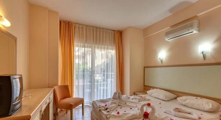 Отдыхала в этом отеле с 15 по 24 сентября. Привезли нас вечером около 21.30. Засели сразу, ужином накормили. Жила в новом корпусе. Номер не очень маленький, нормальный, балконы, по-моему, в каждом номере. Правда, у меня вид был не очень: прямо напротив соседнего отеля. На балконе 2 пластиковых кресла и столик. Санузел под конец сезона немного замученный. Ночью тихо. Сейф в номере, 1$ в сутки. Пытались ставить пузырьки с шампунем, но я пользовалась своим. Фен, кондиционер - все хорошо работало. Сам отель удачно расположен, практически рядом с центром. Кормят тоже хорошо. Да, примерно одно и то же, но индейка и курица - прекрасные, полноценные, еще рыбу периодически давали. Овощи все время, два вида гарнира. Сладости. Чай, кофе, какао (очень вкусное). Алкоголь в отеле не пила. Воду (маленькую бутылочку на человека) каждое утро бесплатно ставят в холодильник. Трансфер до пляжа - 2 раза в день туда-обратно бесплатно. Лежаки и зонтики бесплатно. Пляж совершенно чудесный, практически песок, чистый, все убирают, окурков не наблюдала. Я уезжала вечером, номер сдала в 12.00. С меня браслет не срезали, ела (обед, полдник) со всеми остальными. После пляжа дали чистые полотенца и пустили в душ, нормально привести себя в порядок. Все очень любезные. Да, конечно, это не 4* - ресторанчик маленький, бассейнчик маленький, анимации нет. Но номера чистые, мебель новая (я жила в новом корпусе), полотенца меняли раз в 2-3 дня. Постельное белье тоже меняли. Убирали хорошо, грязи не оставляли. Что еще интересует наших туристов? Вайфай на рецепщене. С детьми туда, конечно, лучше не ехать - до пляжа далековато, 15 минут пешком. Но взрослым непритязательным без "пальцев гнутых" - вполне себе даже. Так что рекомендую этот отель для нормального спокойного отдыха.