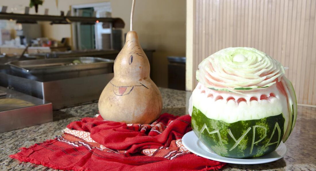 Важным было то, что не предлагают большинство отелей даже по системе все включено. Можно было выносить из столовой фрукты и т.д. Для отдыха с ребенком это супер важно, все прекрасно понимают как едят дети.. сейчас ни хочу, через пол часа - "мама ням-ням?". По поводу еды... Да не Кипрское изобилие морепродуктов, и не Турция с ее выпечкой. А вы куда ехали?Но 3 вида мяса были всегда, плюс рыба, плюс курица...на завтрак, обед и ужин каши!!! Причем разные. А еще 2 вида супа и на обед и на ужин... Что едят дети ... конечно суп...Ура.. поварам... А взрослый человек и так найдет, что слопать... это не проблема..... Макароны, рис ... без подливок! Овощи и фрукты. Ну... не изобилие.... а что у вас дома всегда 12 видов овощей... 15 видов фруктов? Все реально и хорошо. Арбузы, дыни, сливы , 2 вида яблок, персики, нектарины, бананы....что еще то - надо?