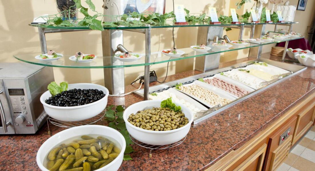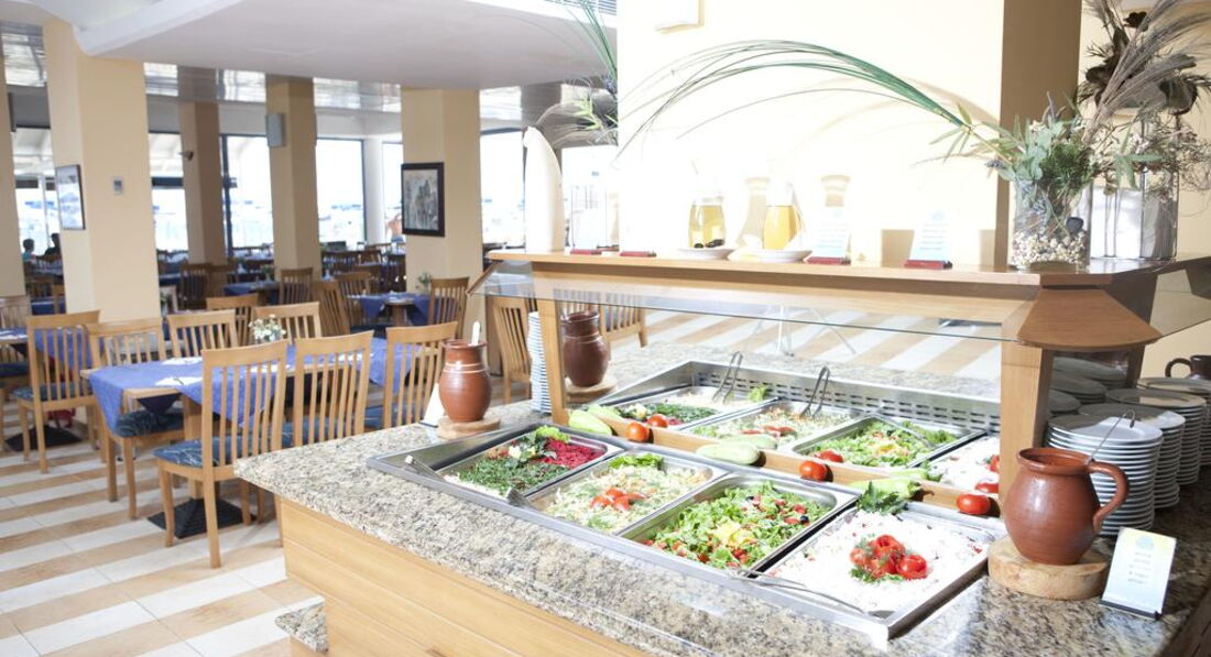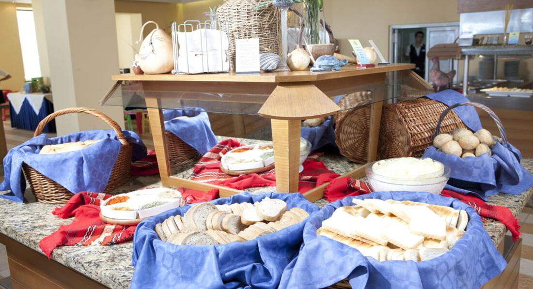 Еда самая разнообразная. На наш вкус временами несколько пересоленная,и временами слегка пережаренная(мясо) но судя по отзывам из других отелей это общая беда всех болгарских поваров. Наверное они всегда влюблены, как минимум в свою страну. Подкачал детский стол. Но если ваш ребенок уже питается с общего стола, то проблем не будет. Очень много фруктов, и они прекрасного качества. Нам не понравился десертный стол, но наши....фигуры, остались этим весьма довольны.