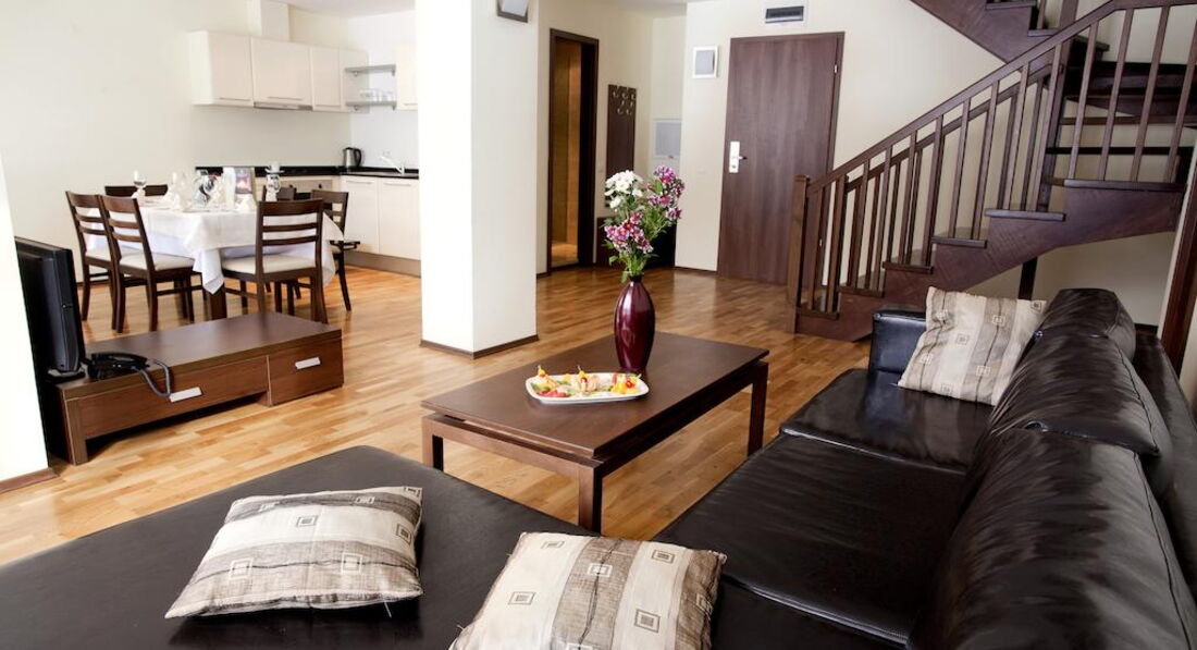 Apartment 3 Bedrooms (Гостина з м'якими меблями і три спальні, розділені дверима. Дві окремі ліжка та одне двоспальне. 1-2 ванні кімнати. Електричний чайник. Деякі номери типу Мезонет. Кухонний посуд – за додаткову плату. Фен та праска на рецепції ( безкоштовно).)