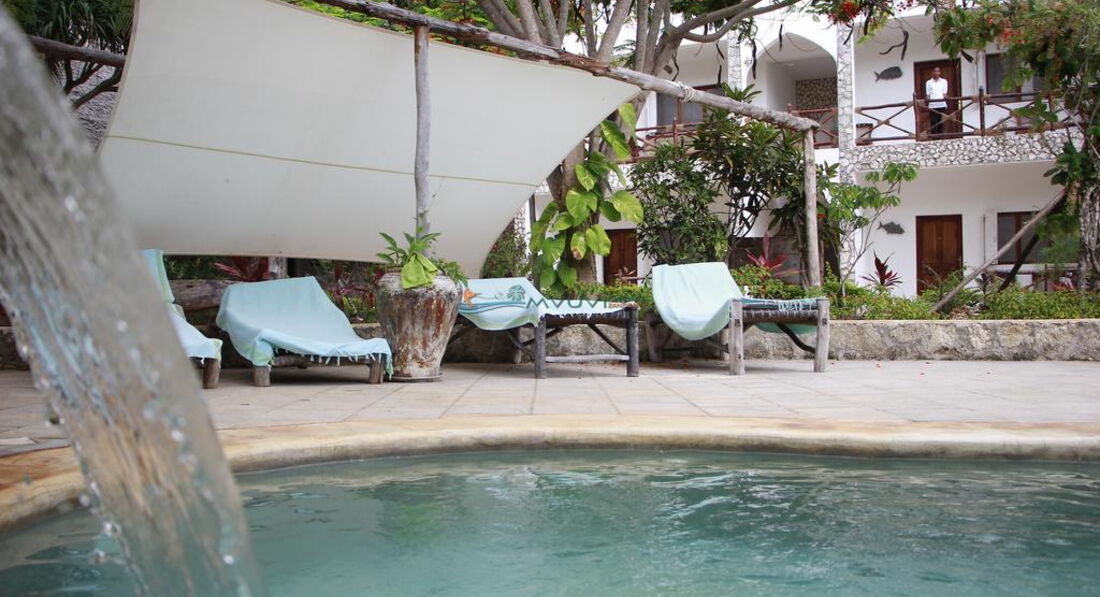 Готель Mvuvi Resort, елітний бутік-готель, який пропонує чудовий відпочинок. Розташований на піщаному пляжі, виходить безпосередньо на Індійський океан і чисті води коралових рифів. Гості зможуть зайнятися плаванням або сноркелінгом біля найближчого рифу. У місцях загального користування працює безкоштовний Wi-Fi. Готель знаходиться в 39 км від міста Занзібар.