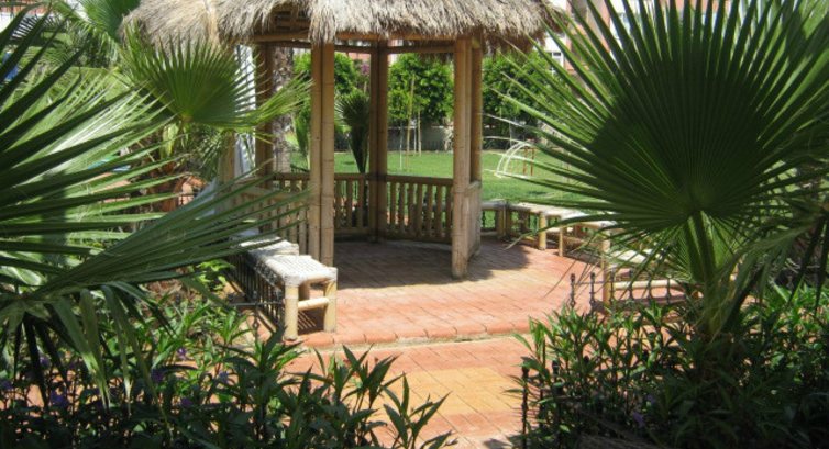 Территория не огромная конечно, но достаточно большая. Есть два полноценных больших бассейна для плавания, один лягушатник, и бассейн с горками (три горки, для детей младшего и среднего возраста). Есть на территории несколько качелей-диванов, подвесных гамаков. Оборудована площадка для игры в минигольф, настольный теннис 3 стола (ракетки с мячами лучше брать свои), волейбольная площадка. Очень много на территории мест "посидеть" - столики с креслами, разной степени удобства. Есть три бильярдных стола, детские автоматы. На территории есть три бара (если не считать бар в главном ресторане и на пляже), лобби бар - работает с 10 до 24, чайный бар (только чай и кофе) работает с 10 до 24, бар у бассейна работает с 10 до ?? не помню, вроде до 19 часов. Напитки только местные бесплатно, несмотря на это качество предлагаемых напитков оказалось очень хорошим, это не "бросовое пойло" как бывает обычно.