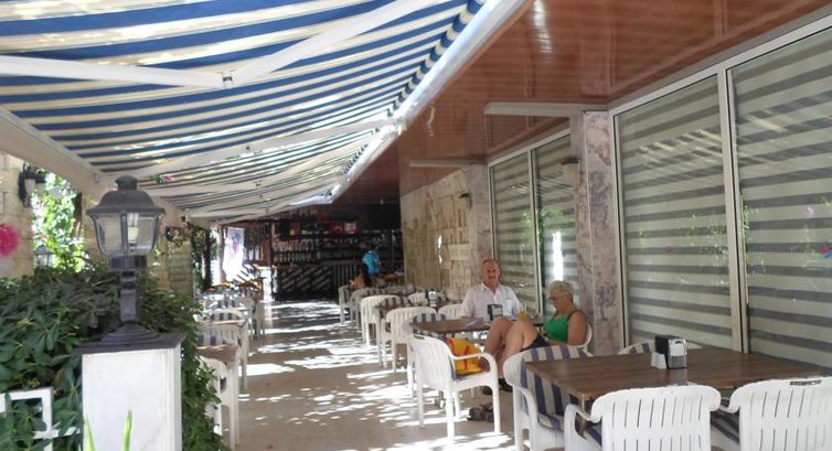 Отдыхали с друзьями в августе 2014 года, это был наш первый визит в Мармарис. Отель скрыт в неприметной улочке от посторонних глаз в 5 минутах неспешной ходьбы от моря. Территория отеля огорожена забором и включает в себя собственно сам отель, небольшой бассейн и террасу с собственным баром.