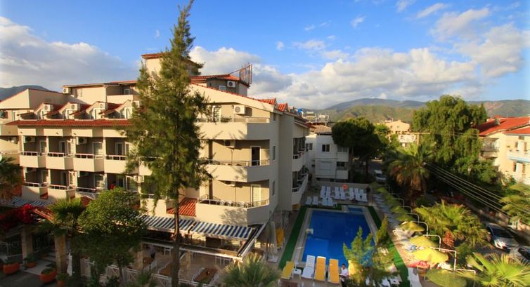 Приехали в отель около 12 дня, разместили быстро ,буквально за 15 минут. Отель не большой, но очень уютный.Свежий ремонт, номера не большие все чисто и аккуратно,в номерах убираются чуть ли не каждый день. Расположение не плохое ,нам понравилось, все в шаговой доступности. До моря медленным шагом минут 8-10, местный супер маркет Мигрос близко направо от отеля по улице где ходят автобусы пешком тоже минут 7-10. Персонал в отеле приветливый, управляющий Джеймс всегда поможет если возникают проблемы-вопросы.Питание не плохое для тройки , овощи,курица,один вечер морской кухни был, голодным ни кто не уходил. Алкоголь джин, рака, пиво,водка все местное чтобы опьянеть нужно очень много выпить))) поэтому дютик в помощь. Лучше взять большое полотенце,т.к из номера выносить запрещено к бассейну и на пляж ходишь со своим, да и на пляже не придётся покупать коктейль за шезлонг. На бар стрит каждый вечер приезжает к отелю автобус и отвозит на улицу, обратно тоже привозят, но мы возвращались пешком,ночью набережная очень красивая.На набережной продают "мидии" три штуки бакс, состоят эти мидии из риса с курицей и кучей приправ не ведитесь. Есть пара елевых экскурсий на Дальян и по островам Эгейского моря. Если берёте обе экскурсии то на Дальян лучше ехать на автобусе не так изнуряет как три часа по морю туда обратно, мы очень устали и остались не довольны ещё и черепах не увидели одни единственные((( До Нирвана бич ходит местный автобус с оранжевой полосой проезд три лиры мы платили бакс.В общем я осталась довольна эти отелем и рекомендую.