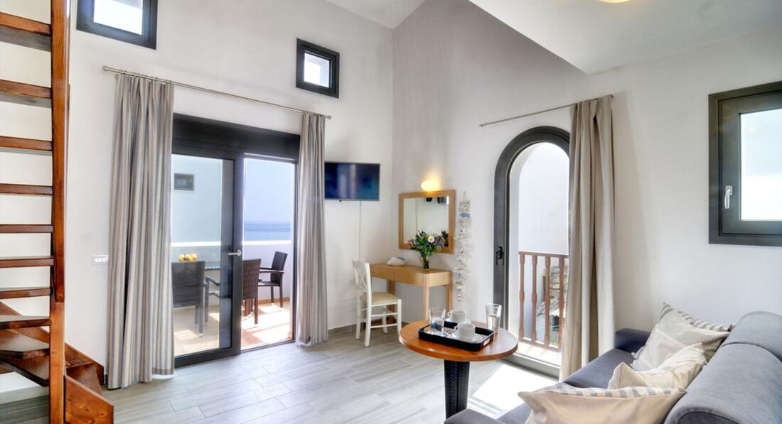 Studio Seafront | 2 спальня відкритого планування з двоспальним ліжком та кухонним куточком, номери розташовані на першому поверсі, номери розташовані на першому поверсі з видами на море;