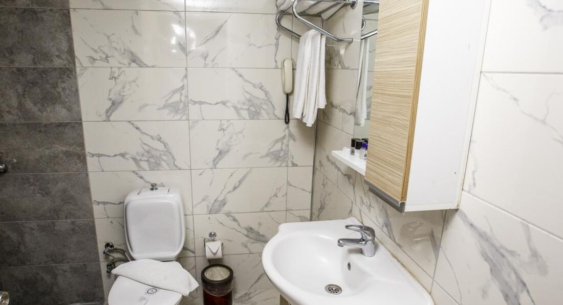 Отель небольшой, экономичный, скромный. Мебель в номерах старая, не спорю с предыдущими отзывами. Но ничего не сломано, не отваливается уж конечно, в принципе, мы отдыхать приезжаем, а не в номере сидеть. Вот сантехника - это да. Душ мурован в стену, снять его невозможно, от этого дико неудобно мыться. В раковине почему-то только горячая вода, кран с холодной не работает. Туалет нормальный. Когда был шторм, с балкона из-под двери ллась вода, собирали вручную сами их полотенцами. В коридорах тоже на полу образовались небольшие озера. Но всё понимаем, форс-мажор, турки сами в шоке были от этого урагана. Не было такого никогда, говорят. Ну и ладно, зато фотки хорошие получились этой надвигающейся бури)