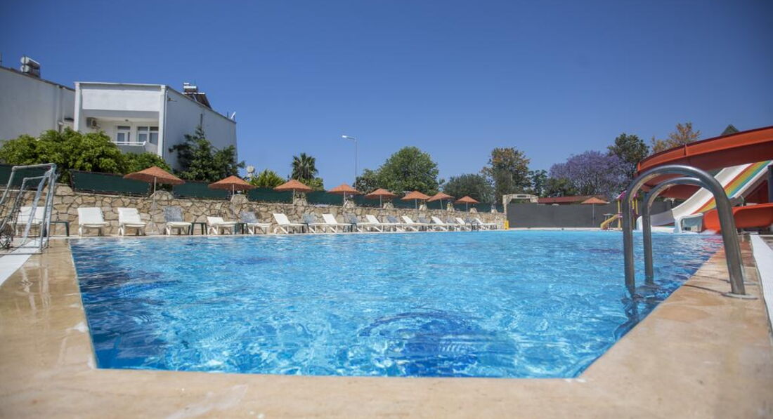 В этот отель едут те, для кого важны пляж и море. Бухта Инжекум в Алании одна из лучших. Отель рядом с морем, инфраструктура вокруг отеля развита. Но сам отель очень и очень скромный, скорее 3*, чем 4*. 5 этаже в корпусе, лифт не работает, с уборкой и чистотой явные проблемы, в зоне приема пищи очень пахнет столовой, ассортимент блюд не удивляет разнообразием, а скорее наоборот. Есть бассейн в центре территории отеля, одна водная горка в углу территории, но там присутствует запах канализации. Направо за углом от отеля есть большой акварарк, напротив Alara Grand Bazar. WiFi бесплатный на всей территории отеля, упаковка багажа для гостей отеля бесплатно.
