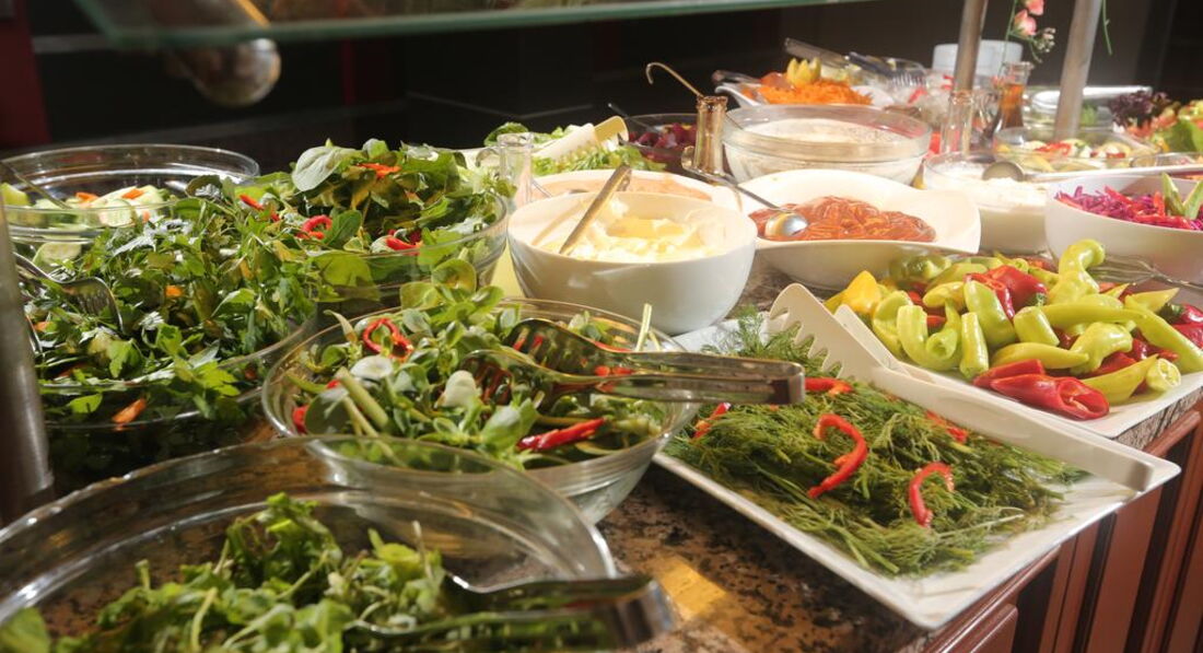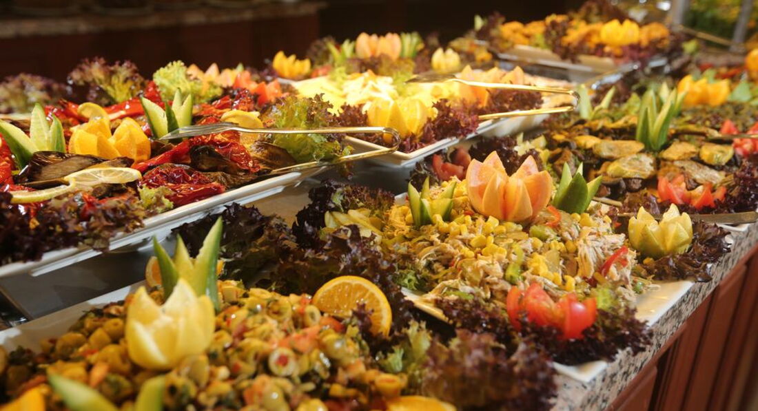 Питание меня лично устроило полностью. Всегда и на завтрак и на обед и на ужин, можно найти много чего себе по душе, потому что выбор достаточно большой. Есть и фрукты и различные сладости, и салаты и овощи, сыры, курица, рыба, макароны, картофель, да много чего на самом деле. Голодным остаться невозможно.