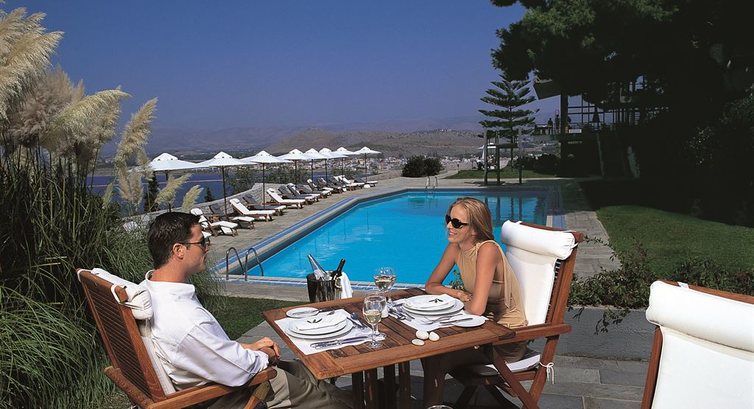 Територія та послуги: Автостоянка безкоштовна (гараж) Бар, снек-бар грецька кав'ярня 3 ресторани Лікар на виклик Інтернет: Wi-Fi доступ в інтернет - за доплату Консьєрж Конференц-зал - 4 конференц-зали (міс. до 316 місць) Обслуговування номерів Перукарня - послуги перукаря - за запитом Сейф у номері Послуга "будильник" Хімчистка/пральня Розваги та спорт: Басейн із прісною водою Басейн з підігрівом - приватні басейни з підігрівом (підігрів - за доплату) Яхт-клуб - оренда яхт. Джакузі в нек. типи номерів Масаж у салоні краси Телезал Для дітей: Няня на запит. Живлення: Сніданок, вечеря (HB) Пляж: Галечний 500 м, муніципальний Парасольки Кабінки для перевдягання та душові Лежаки До оплати приймаються кредитні картки: Visa, Amex, MasterCard, Diners.