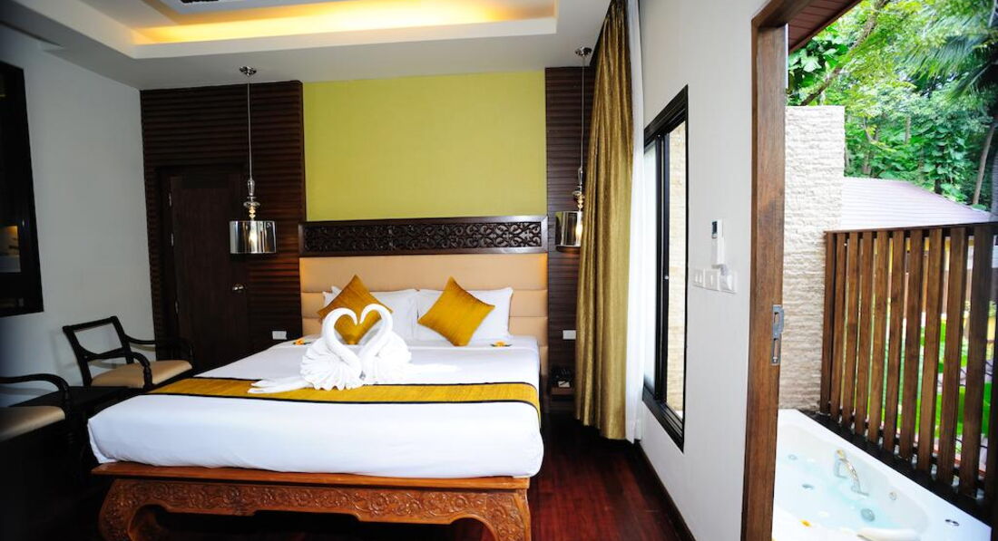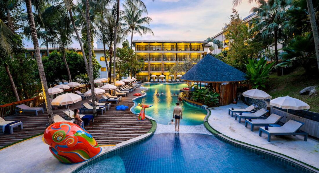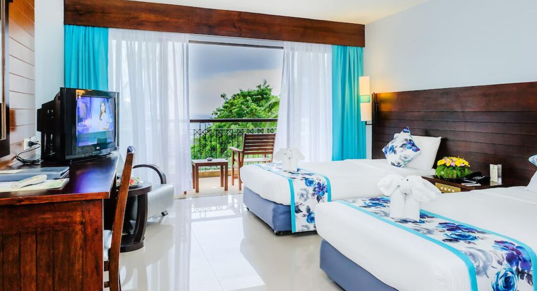 Курортний комплекс з видом на гори та Андаманське море розташований менш ніж за 10 хвилин ходьби від пляжу Ката.