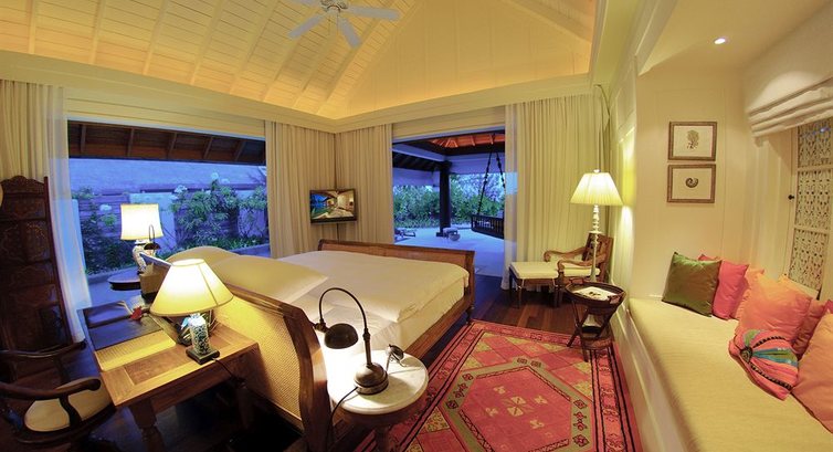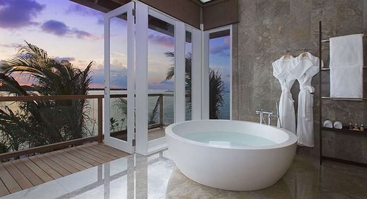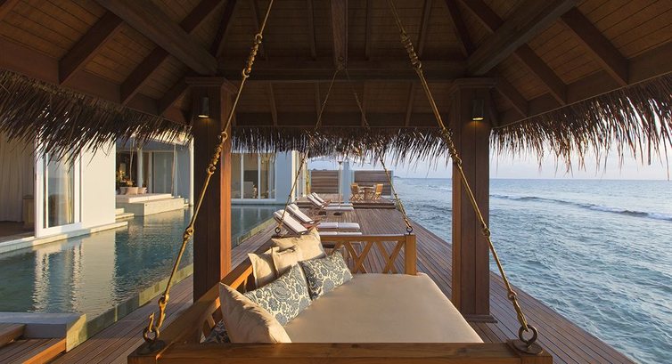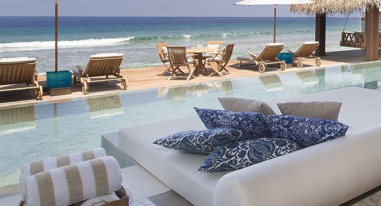 И оушен виллы находятся на стороне волны. Там нет захода в море, поэтому все они имеют собственный шалаш с круглым диваном на пляже...