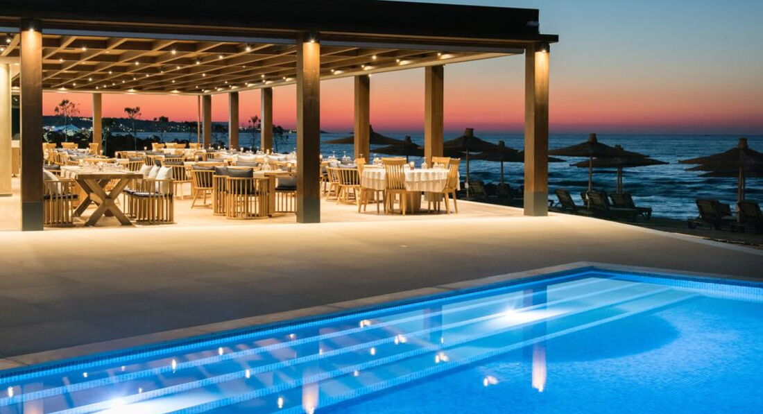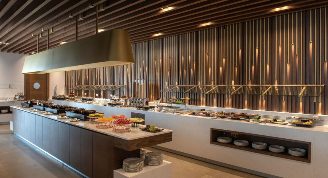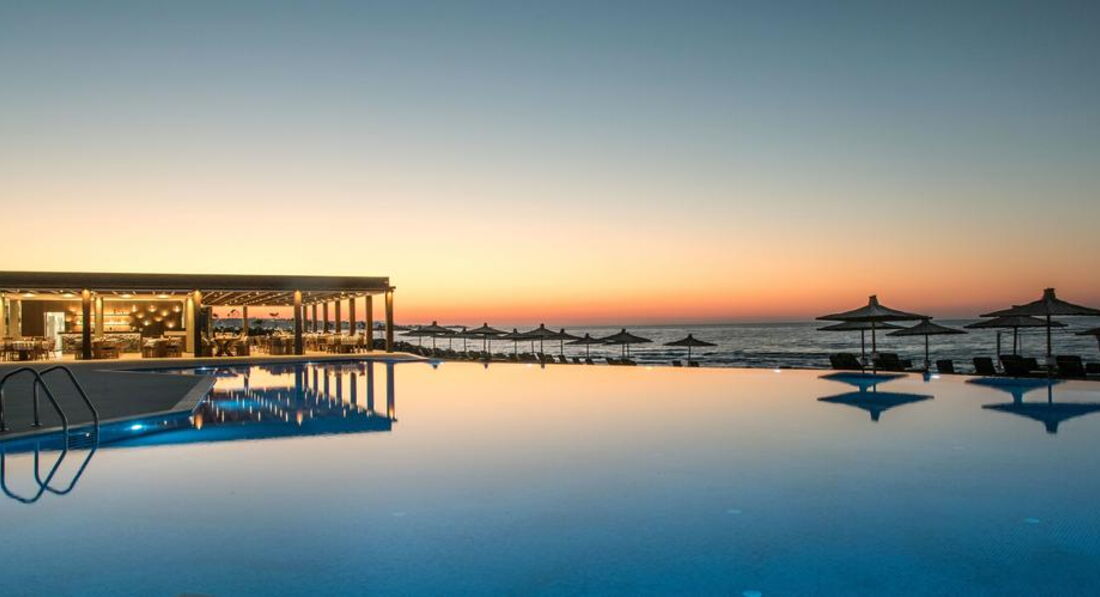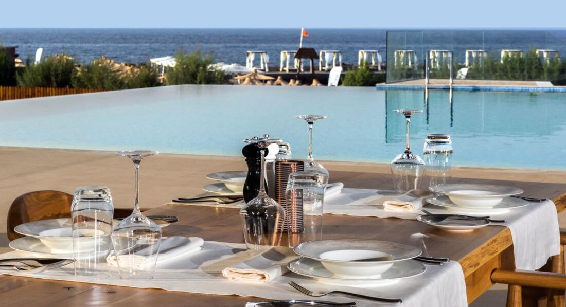 • два ресторани а'ля карті: біля басейну "Meat in Point" (обід 12:30-16:00 та вечеря 19:00-23:00) та на пляжі "Eternal Blue" (вечеря 19:00-23:00)