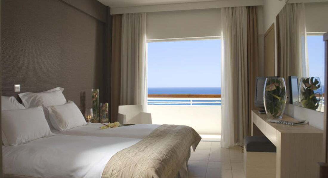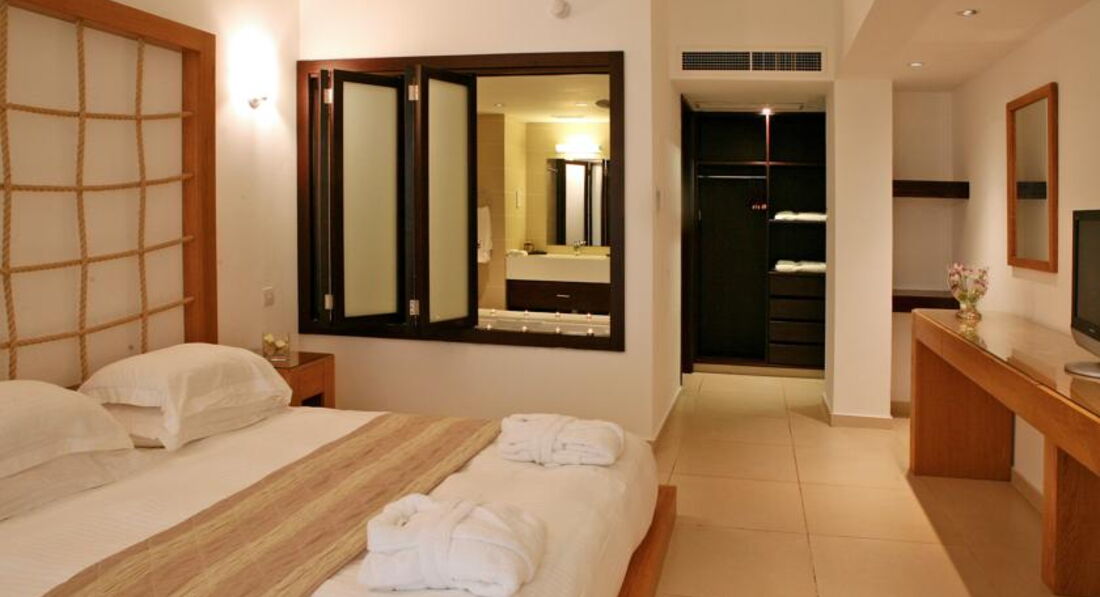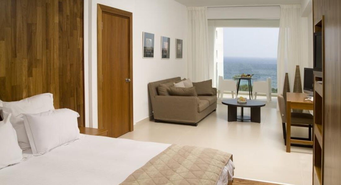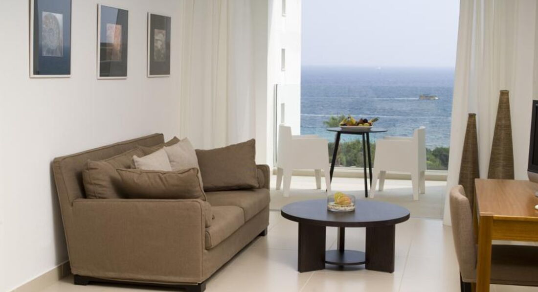 24 Junior Suite (42 м2, макс. 4 чол.) - спальня та зона вітальні, ванна кімната, балкон з видом на море/басейн)