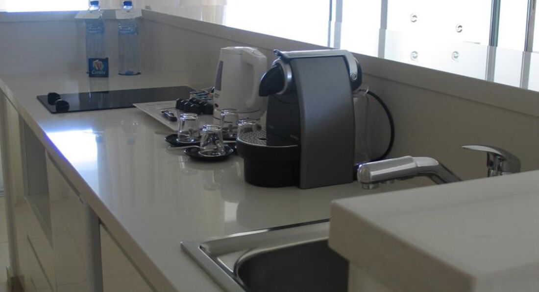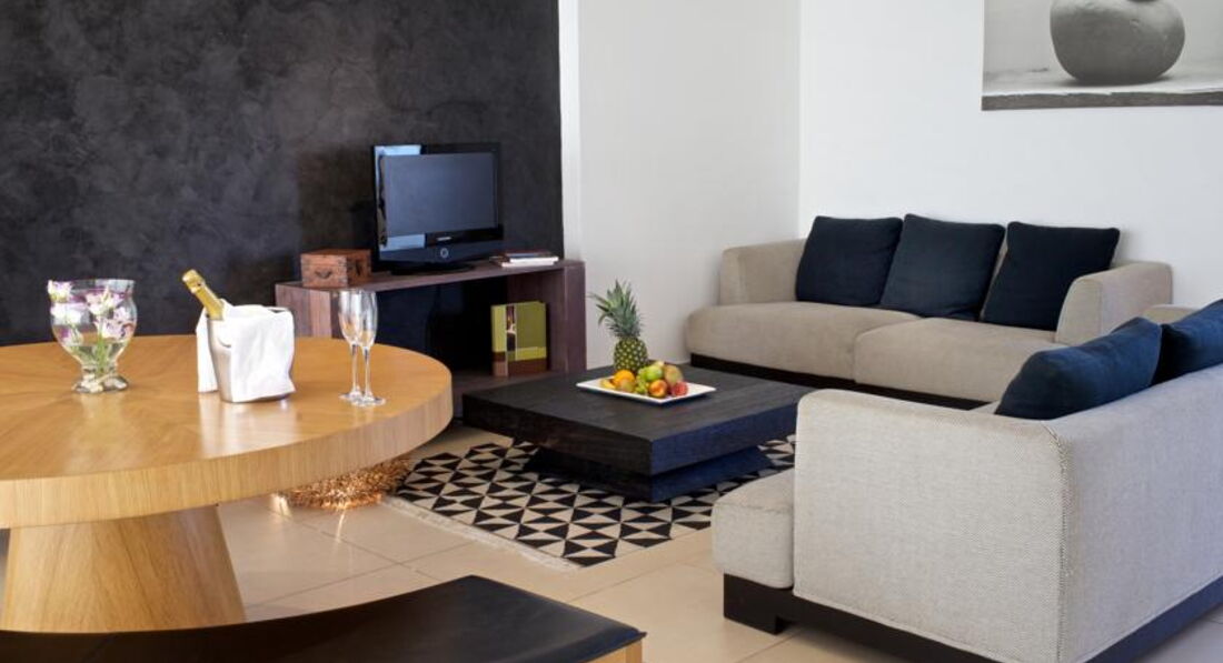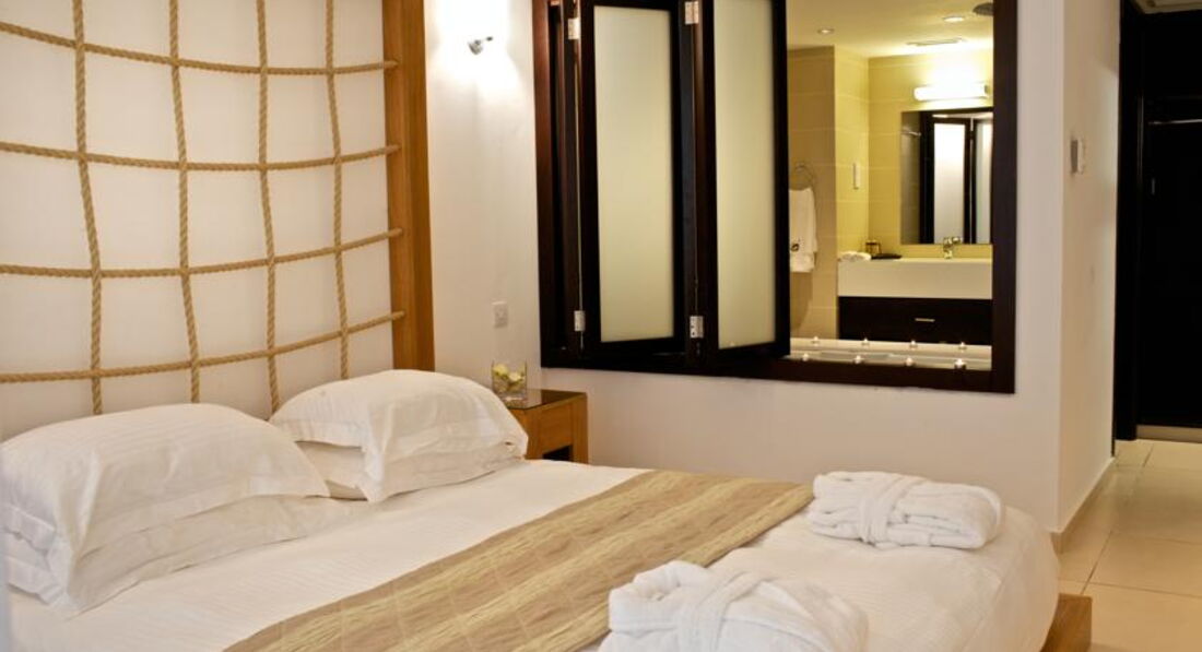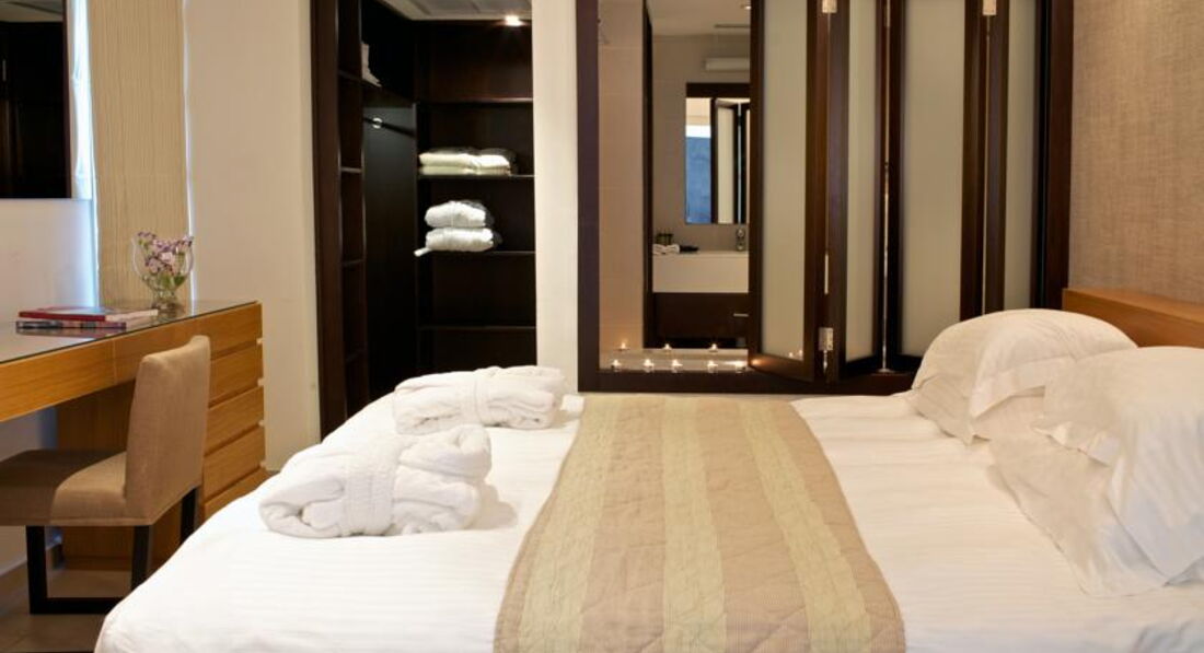 4 Grand Suite (82 м2, макс. 5 чол.) - 2 спальні + вітальня зі столовою зоною + кухня, 2 ванні кімнати, є міжкімнатні двері, з видом на море/басейн, простора тераса з джакузі.