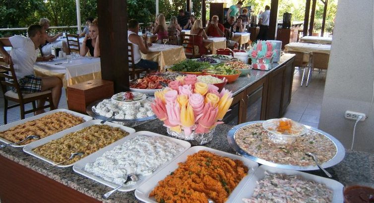 Питание хорошее - особенно ужины когда повар готовил блюда на гриле. Очень вкусно. Продукты всегда свежие. Из фруктов был или арбуз или дыня. В обед и на ужин- десерты. Не могу отметить удобное расположение отеля- до моря минут 7 неспешной ходьбы и в шаговой доступности центр города с многочисленными магазинами. Любителям дискотек далеко ходить не придется- все рядом. С теплотой вспоминаю дни проведенные в отеле. Хочется еще раз сюда вернуться. Спасибо вам за отдых! Отель рекомендую!