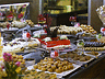 кормили нас получше, чем ранее приехавших (почитала отзывы): язык говяжий, телятина с подливом, бефстроганов, карт. пюре (из картошки, а не из порошка!), в больших подогреваемых поддонах стояли спокойно тущеные мидии с креветками, кальмары на прилавке с закусками, рулеты курица+язык.