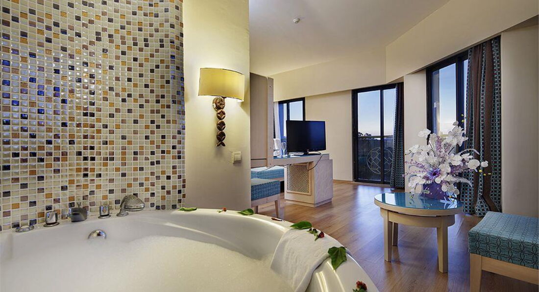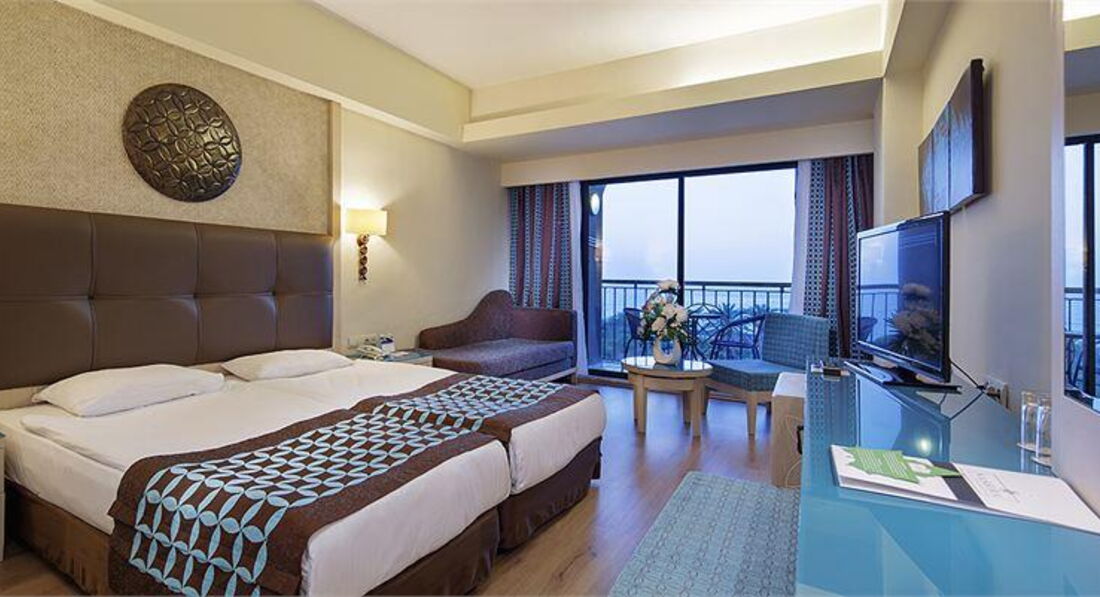 Всем привет! Я отдыхала с мамой,нас было двое человек. Начну с того,при заселении на ресепшене нам попалась не очень приветливая девушка,которая испортила нам настроение. Нам дали номер экорум на 1 этаже с видом на море,когда мы пришли в номер,стоял ужасный запах и еды и жаренного,мы естественно пошли менять номер,на что нам ответили с рывком,что только завтра после 10 утра. На следующий день мы встретились с нашим туроператором,которому сказали все минусы нашего номера,сразу же пошли на ресепшен и предложили другой номер,но нам не понравился тот номер и в общем мы остались в номере 1114. Отдых наш прошёл очень хорошо,даже отлично! Единственное отель не дотягивает на 5*,максимум 4*.расскажу поподробнее о минусах этого отеля. Уборка в номерах,ее нет вообще,сколько бы раз мы не просили,оставляли деньги,полы все равно не мыли. Некоторый персонал не говорит по-английски,что было не очень удобно общаться. Заход в море сложный и можно удалить ноги,поэтому берите специальные тапочки,у пирса все доски качаются,во время нашего отдыха пытались сделать новые доски,но неуспешно. Анимация-ужас! Не хотят ничего делать,тех людей которые они наняли леньтяи! Было слишком скучно,анимация была только для детей в 20:30 и "взрослая" в 21:30,аниматоры на шоутайм все делали не сами,а звонили и заказывали танцоров и тд. И последний минус,в отеле нет интернета,вообще никакого,либо рано утром он есть,либо поздно ночью и то навряд ли. В баре дешёвый и вонючий алкоголь,который я побоялась взять его.