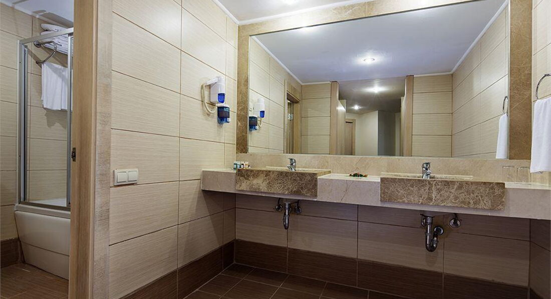 Номер хороший, просторный. единственный недостаток не было в душе лейки на гибком шланге. Только огромный рассекатель сверху и кран на уровне колен. Но мы ходили мыться в хамам, да и ребенка там удобней мыть. Убирались в номере хорошо.
