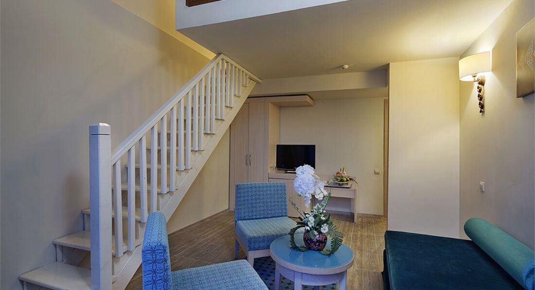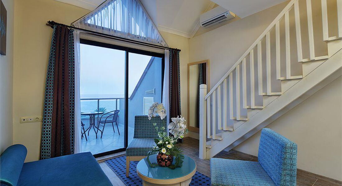 55 duplex sea view rooms (40-45 м2, 2-поверхові, 1 поверх - вітальня, 2 поверх - спальня, / міжкімнатних дверей немає, 1 ванна кімната, макс. 3+1 чол.),