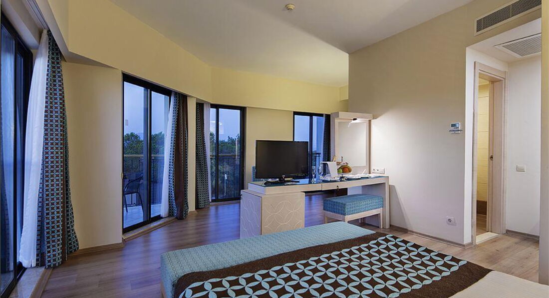 Какой же выбрать номер ? Это очень сложно. Те номера что с видом на море , они ещё некоторые с видом на аквапарк - визги пока работает аквапарк , те что просто на бассейны - там дым от гриля и музыка от дневной и ночной анимации, а те что с видом на лес и горы -там круглосуточный шум от генератора соседнего отеля . Поэтому для тех кому нужна тишина и покой ,лучше всего номера с видом на лес и горы со стороны , где нет соседнего отеля.