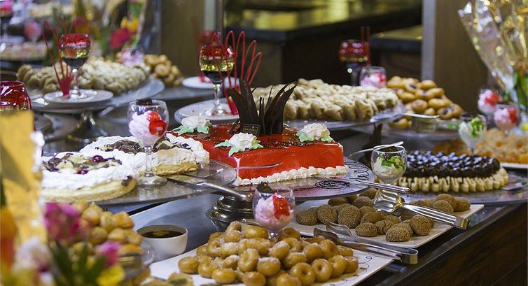 На ужин, который длится с 7 до 9 вечера, после 25.05 нужно было приходить ровно в 19:00, иначе приходилось ждать, пока освободятся столы, т.к. на всех гостей их почему то не хватало. Если приходили ужинать к 8 часам, то была вероятность остаться без каких-нибудь блюд (к этому времени заканчивались сладости, горячие блюда-гриль, тарталетки с креветками - вместо них ставили овощные тарталетки. вместо котлет, могли подать жареную колбасу). Очереди за некоторыми блюдами занимали минут по 15-20. к фруктам (в основном к арбузам и клубнике) было не пробиться, т.к. их просто начисто разбирала голодная после зимы толпа туристов.
