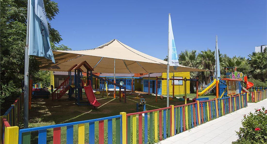 на пляже тоже есть детская площадка под навесом,деткам на радость.