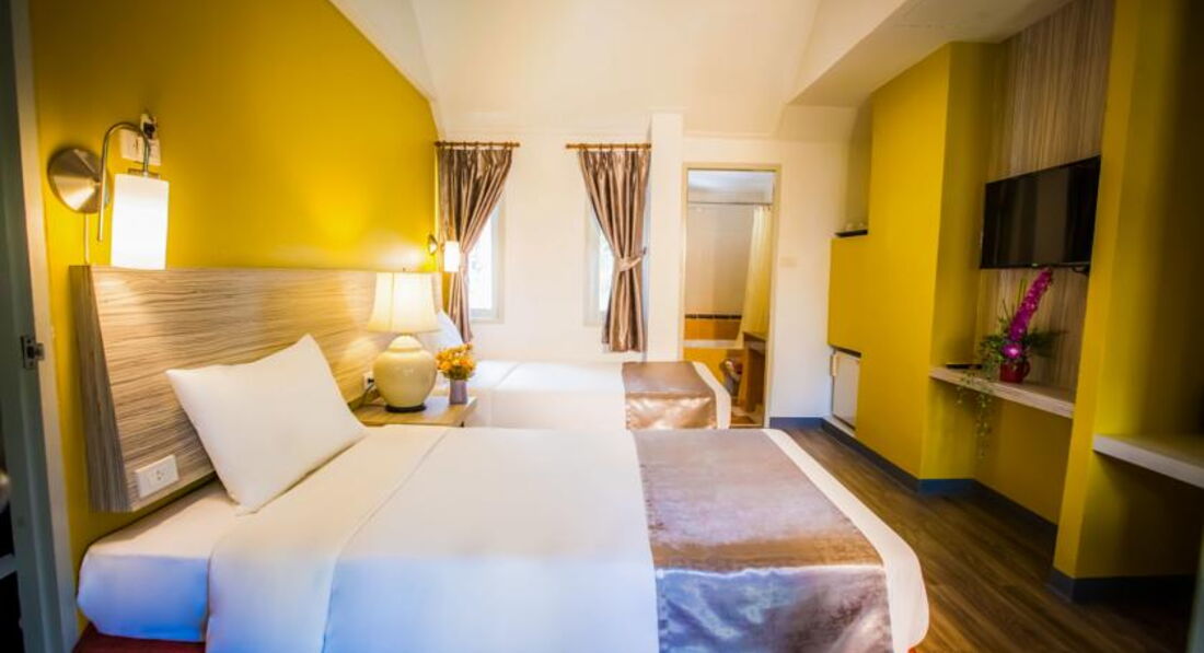 замечательный отель!Как на дачу съездили,уютно,тихо,все под рукой. Мы изначально не хотели суеты центра города,а там как нельзя к стати тихо и спокойно. Номера не большие,но нам больше и не нужно было. Одна большая кровать ,шкаф,телевизор с русскими каналами.Всё супер. Удобное расположение через дорогу море, не далеко ночной рынок,где мы наслаждались морепродуктами и фруктовыми фрешами .По соседсту прекрасный маленькое заведение, где заправляет его хозяин ,наш земляк Валера. Можно поесть как и том ям так, и окрошку, и борщ.И при этом все Очень вкусно.Прекрасный персонал улыбчивые,добрые люди. Отдельное спасибо Библио Глобус. Все продумали до мелочей и сим карты,для связи с гидом и интересные экскурсии,особенно на реку Квай,рекомендую. Хочется туда возвращаться