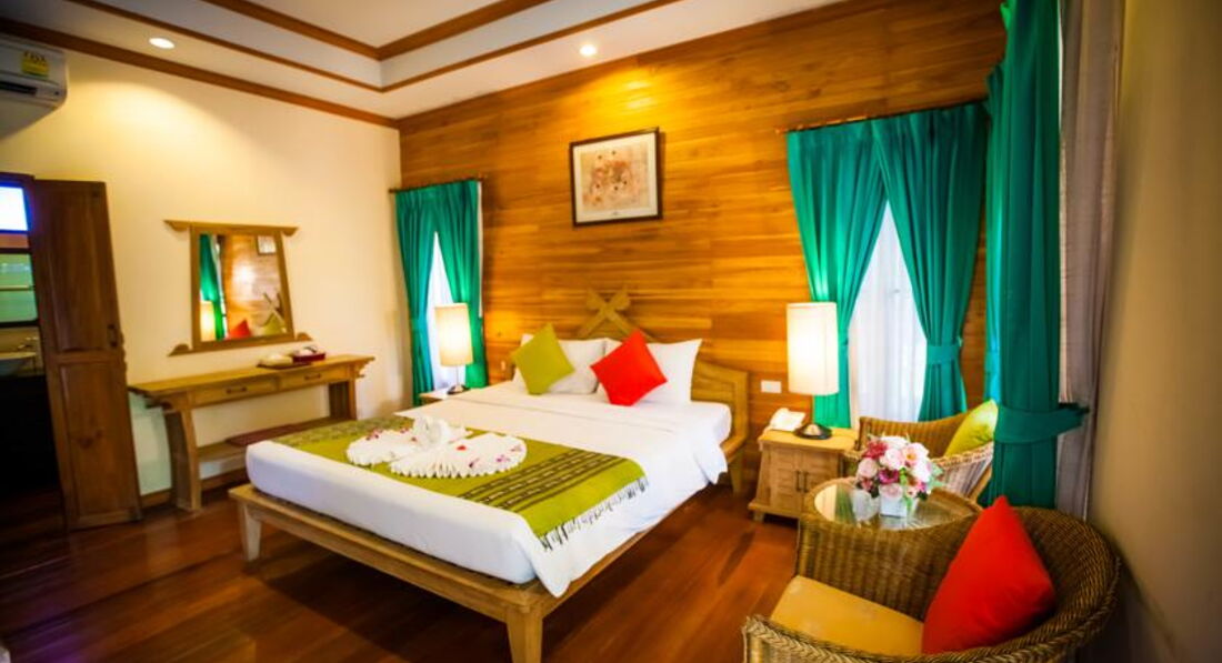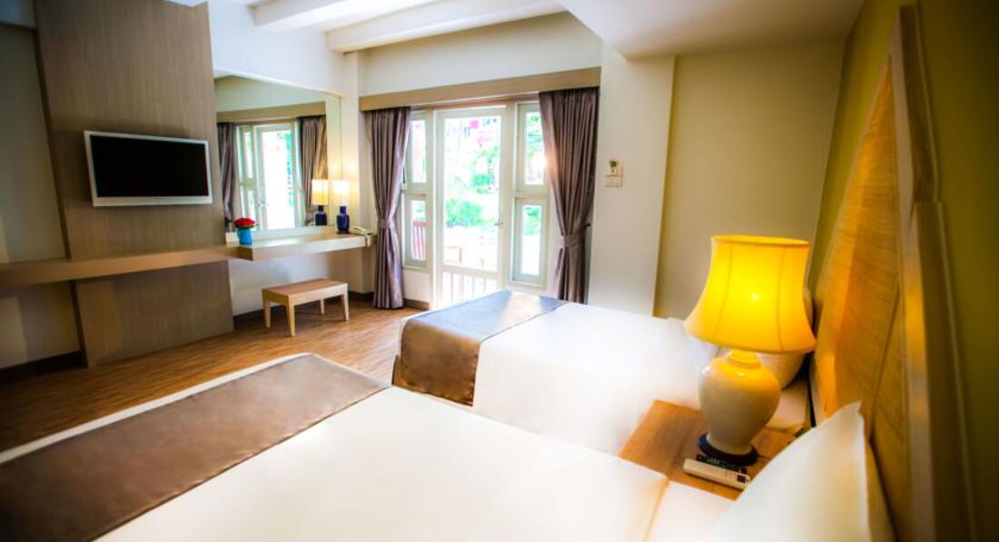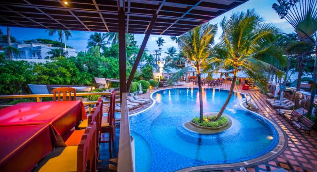 Всем привет! Отдыхали с мужем в этом отеле в январе 2016 г. Погода была очень теплой, можно сказать жаркой, иногда набегали тучки и шел кратковременный дождик, но общего впечатления это не портило. Отель находится через дорогу от пляжа, как и практически все отели в черте города. Территория очень зеленая, много орхидей свисают с деревьев, поют птички, бегают обезьянки. Номера хорошие, уборка ежедневная. Мы жили в бунгало на 1 этаже. Номер был маленький, но уютный, с большим санузлом. Воду приносили каждый день. У нас ничего не ломалось, Слава Богу, хотя от других мы слышали жалобы, что долго приходилось ждать персонал. Мы только забывали в номере ключ, привезли дубликат быстро. Там главное всё делать и просить с улыбкой, тогда всё будет быстро и без взаимных претензий. Улыбка и хороший настрой - это религия тайцев. Если этот момент освоить, то дальше всё пойдет как по маслу. В отеле только завтрак, но долгий и в принципе сытный. Но не сильно разнообразный. И два раза не позавтракаешь, они отмечают в специальной карте гостя. Но если нужно, дадут с собой вынести. У нас было осложнение, муж в первый же день подвернул ногу до трещины в щиколотке и ходил три дня на костылях в гипсе. Мне разрешали его кормить. И вообще тайцы народ очень дружелюбный, подвозили иногда мужа до нашего бунгало, помогали вызвать такси в больницу. Там с такси кстати очень интересный момент. Называются тут-туки. Это обычная маршрутка открытого типа с лавками напротив друг друга. Стоит очень дешево, но маршрут может измениться в любой момент по желанию водителя. Вам с улыбкой скажут вылезайте и привет. И если вы подойдете к любому водителю и назовете конкретное место куда вам нужно ехать, маршрутка превращается в такси, стоимость вырастает на два нуля, и соответственно водитель может всех высадить и повезти только вас лично. В общем спрашивайте куда все едут у сидящих в маршрутке. Сбилась я с рассказа об отеле. Так вот, на территории есть свой бассейн, чистый. Есть свой ресторан. Готовят очень вкусно, мы там обычно ужинали, если были вечером в отеле. Потом открылась маленькая русская кафешка совсем рядом - если выйти с территории и пойти налево, то прямо за первым же маркетом, прекрасно готовят. Очень быстро тайская еда надоедает, с нашем случае конечно. Многие любят местную еду. Также очень вкусно тайцы готовят утку. Но это в центре можно покушать. В общем сам отель в целом нам очень понравился, красиво, чисто. Еще нужно иметь в виду, что в черте города море очень мутное и много прибивается дохлой рыбы и разных там ежей и т.п. Местные объясняют это глинистым дном, с которого поднимается муть. Мы глубоко не разбирались в этом вопросе, поэтому без комментариев. Купаться и загорать - это на острова, наш вывод. Экскурсии спокойно можно брать на улице в местных агенствах. В два раза всё дешевле с тем же комфортом и русскими экскурсоводами, ведь наших там живт огромное количество. Ничего не покупайте на бесплатной ознакомительной экскурссии по городу!!! Всё можно купить в местных магазинах и аптеках в несколько раз дешевле, и это не фигура речи, а буквальное предостережение.