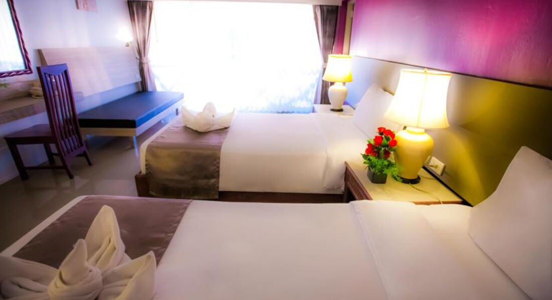 Отдыхали в декабре 2015 г вдвоем с мужем, отелем мы остались очень довольны в целом, если закрыть глаза на некоторые недостатки. Но сначала о плюсах, на ресепшене хорошие улыбчивые администраторы, зарегестрировали нас, и отвезли на своей машинке с багажом до номера. Номер маленький, но уютный (собственно мы приехали не сидеть в номере, а путешествовать) находился на втором этаже, в тихом месте. Очень приличная территория для отелей в паттайе, и главное очень зеленая! красиво и ухоженно. Зона бассейна тоже хорошо обустроена, есть открытые лежаки и закрытые беседки, правда их там всего три и обычно были заняты. Бассейн с детской зоной, небольшой имитацией водопада. Завтраки приличные, мы люди в еде не привередливые, нас все устраивало, достаточно разнообразно. Каждый день были ананасы, арбузы, нарезки овощей, помидорки черри. Из горячего было блюда 3-4 на выбор, а так же яичница, блинчики, мюсли... еще был суп, но его не успели попробовать. Так что те кто пишет что скучно и однообразно...уф не знаю, а дома у вас каждый день на завтрак что то оригинальное готовится? Меня так, их завтраки более чем устраивали!