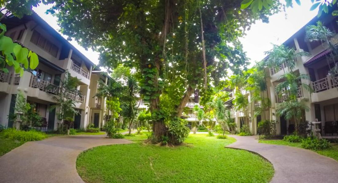 Отель очень понравился! Такой именно и подыскивали, с зеленой территорией и самое главное с невысокими 2-х и 3-х этажными корпусами и бунгало . Не хотели отели с многоэтажными зданиями.. Поселили прям как и мечтали в отдельное бунгало. Персонал вежливый, особенно таец, который немного знал русский, кажется он себя называл Антон, позитивный такой, не знаю работает сейчас он или нет. Даже провожал нас, когда мы уезжали домой, говорил, что бы приезжали еще. Все нас устраивало, завтраки, уборка номера. Бассейн хороший. В местном ресторанчике кушали, все понравилось, только очень много внимания, даже не ловко себя чувствуешь! Отель советую!