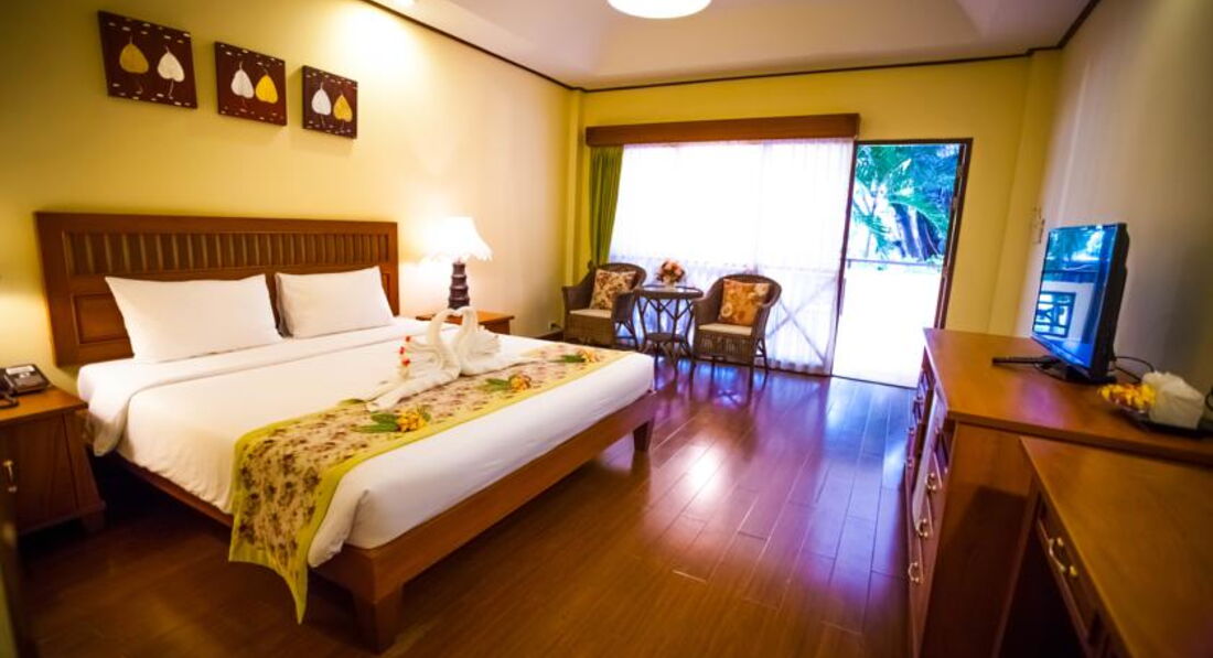 Очень дружелюбный персонал. Вообще тайцы- как нация мне очень симпатичны. Очень зеленая территория отеля. Вся в деревьях, кустах, цветах. Пожалуй этим очень сильно отличается от других отелей. Ощущение, что попадаешь в домик в деревне. Но это снаружи. Внутри номер (стандарт 611) достаточно комфортный, если не придираться к мелочам- типа отсутствия шторки в ванной, невозможности открыть окна, т.к. сразу в номер попадают полчища комаров, отвратительная звукоизоляция- точнее ее отсутствие, кондей в данном номере расположен неудобно- дует прям на кровати. В других номерах есть другое расположение. Зато в номере есть интернет , как и почти на всей территории отеля. Если учитывать стоимость отдыха, то эти минусы несущественны. Суперриоры находятся в конце территории 3х этажные корпуса. Совсем другие. Делюксы вообще немного в стороне. Рядом стройка высотки.