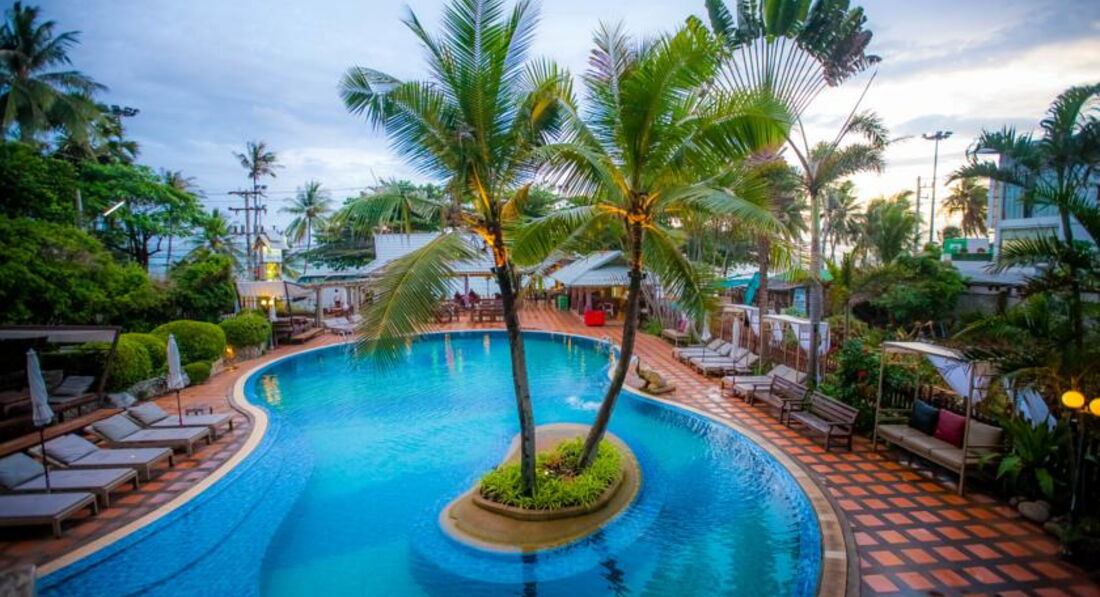Отдыхали в данном отеле в январе 2014 года. Очень понравился сам Тай. Если начинать свое путешествие то только с него. Понравилось очень его зеленая территория.Прежде чем выбрать этот отель прочитала отзывы о нем. И встречал на ресепшене Антон или как там его зовут не помню, вместо номера в отеле он нам предложил бунгало. Это просто было супер. Был маленький рай.Территорию отеля хорошо убирают, следят. Завтраки не сказать что прямо роскошь, но терпимо. Голодными не будешь. Персонал приветливый. ОЧень понравилось что среди многоэтажный отелей, такой райский уголок. Выход в море очень хороший. Море конечно с островами не сравнится. Ресторан при отеле тоже очень ничего вкусно готовят. Семейный отель. Иногда правда раздражали пьяные отдыхающие. Они там есть.