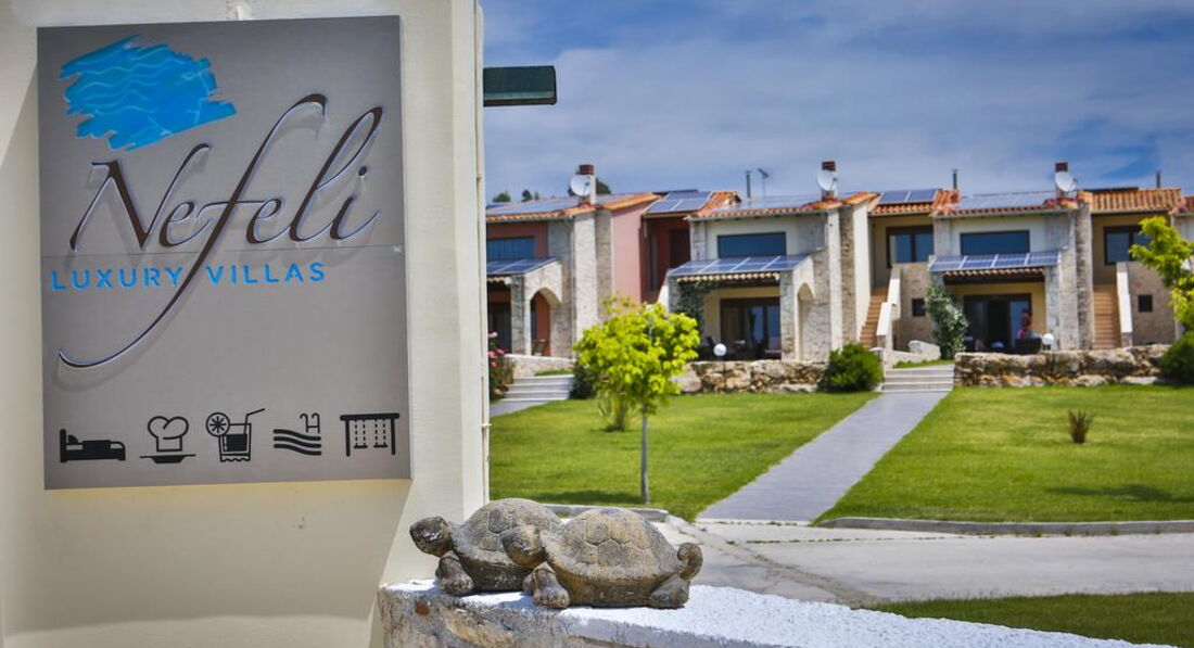 Nefeli Luxury Villas розташований у Халкідікі, на півострові Кассандра, за 1.5 км від села Nea Skioni. Перед комплексом розташований пишний зелений сад із красивим пляжем із кришталево чистою водою. За 99 км від готелю розташований аеропорт Македонії, а найближча автобусна зупинка знаходиться всього за 50 м.