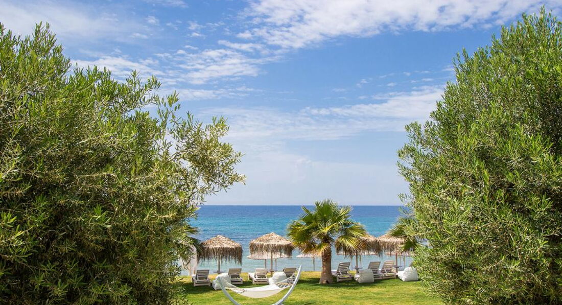 Розташування: на узбережжі півострова Кассандра, за 100 км від аеропорту м. Салоніки, за 29 км від селища Каліфеа і за 9 км від селища Ханіоті, на березі моря.