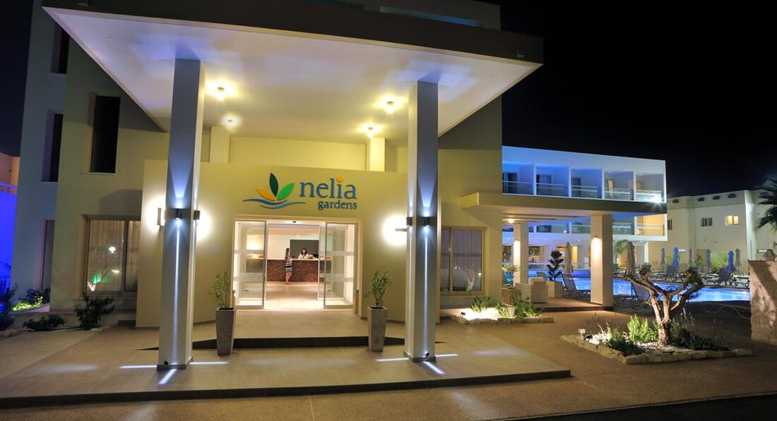 Унікальний за своїм дизайном комплекс, оточений доглянутими садами, знаходиться в хвилині ходьби від піщаного пляжу і за кілька метрів від готелю Nelia Beach, в якому гостям Nelia Gardens є ресторан, оздоровчий центр з фітнес-залом і тенісний корт.