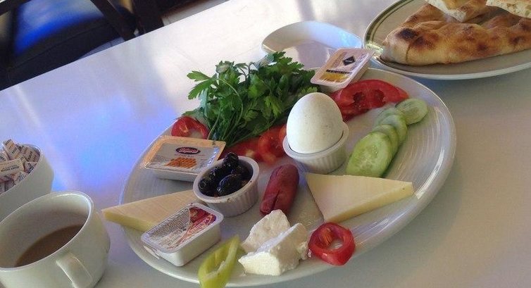 Я отношусь к людям, нетребовательным к еде. Главное, чтобы её не пересаливали. Но даже меня в первый же день привели в замешательство обед и ужин, которые состояли лишь из супа, макарон и каши. Позже на столе стали появляться овощи, сначала в тушеном виде, потом и в виде салатов. На ужин, кроме основных блюд, был и небольшой шведский столик. Зелень появилась в меню лишь однажды (!!!) за неделю. Пару раз была курица. Арбуз, апельсины - через день. Завтрак в виде шведского стола вполне стандартный для турецких "трёшек". Мне, лично, не хватало простакваши и чего-нибудь сладкого. Порционные джемы есть не хотелось. А где знаменитые "мокрые" печеньки?