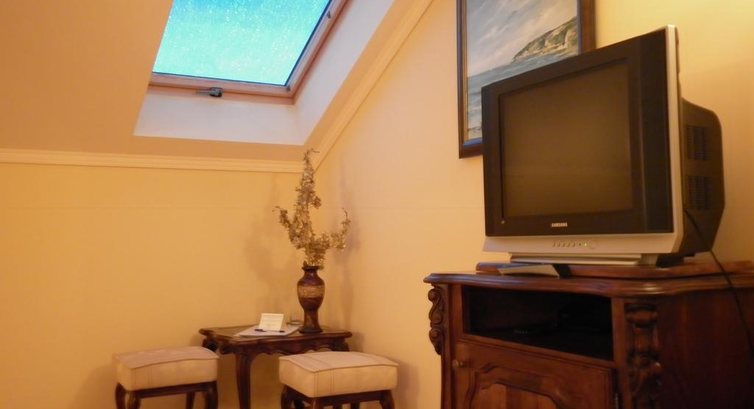 Из-за позднего обратного вылета пришлось продлевать проживание на 1 день (50 лев) с переездом на полдня в другой номер с мансардой. Так как у нас была возможность сравнить - не рекомендую выбирать вариант размещения с мансардой С выключенным кондиционером в номере быстро становится душно, а при открытых окнах от раскаленной черепицы идет жар. Да и на балконе вещи сохнут лучше. В нашем номере с мансардой не было сейфа и вешалки у двери - возможно в других мансардных номерах так же.