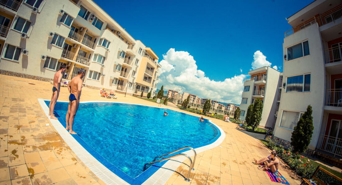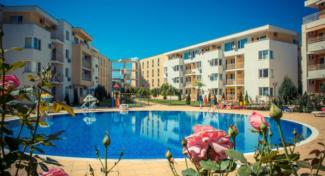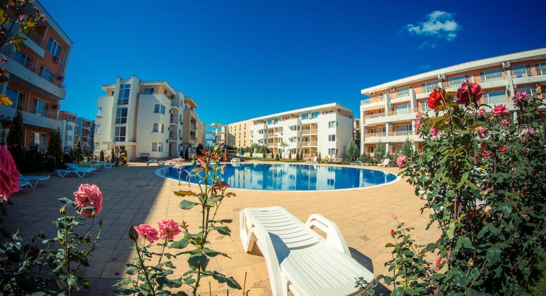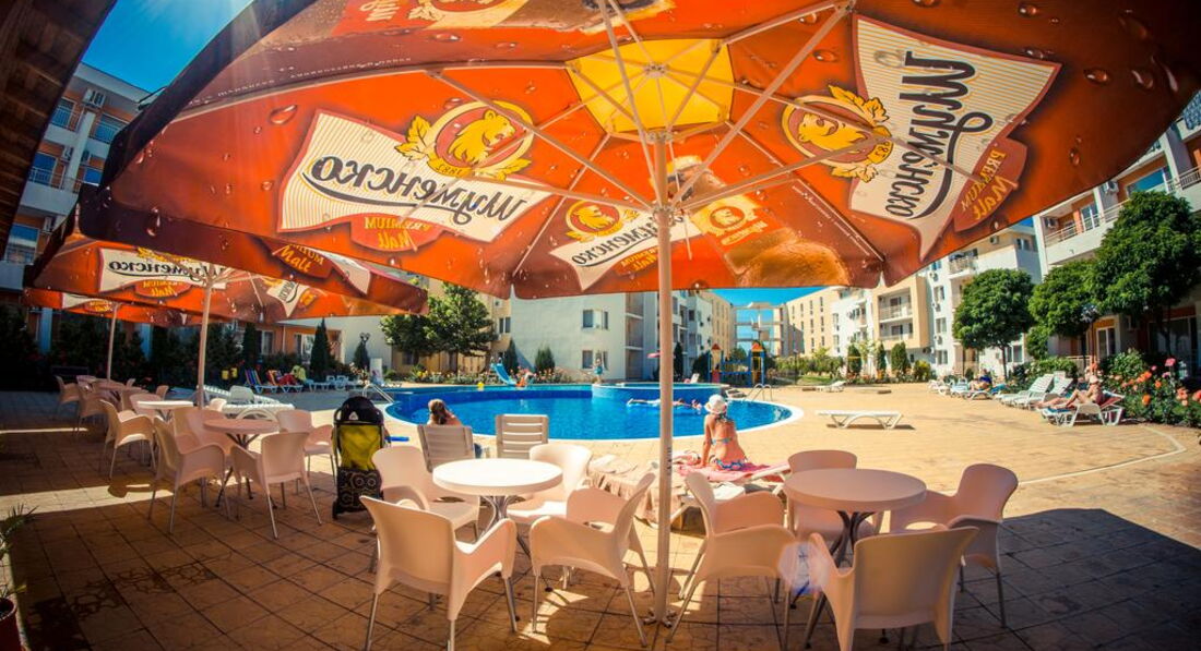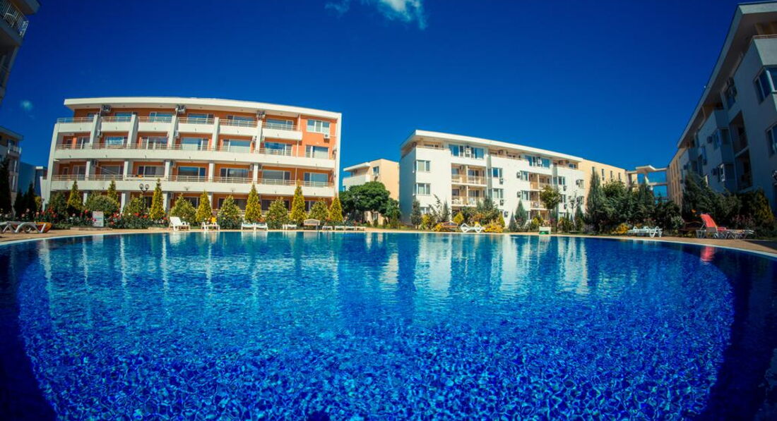 Отдыхали впервые в апартаментах и очень понравилось № 170 корпус В1! В отеле очень доброжелательный персонал,большое спасибо всем!(заселение сразу по приезду в 9.00 часов утра и особенно приятно-отъезд в 18.00,не надо было бродить по улицам) Все вопросы решались оперативно,спокойно.Тихо и спокойно в красивом комплексе(розы,цветы,чистые бассейны)после шумного центра-просто рай.Каждый день ужинали на балконе в полной тишине ,наблюдали как садится солнце! Да,весьма неприятный момент,перебежать дорогу,но потом привыкли,до моря шли минут 15. Теперь о Болгарии-в целом понравилось,но немного грязные пляжи,нет душевых,туалеты платные и Очень Дорогие Лежаки !15 евро комплект на двоих!! Но зато есть бесплатные зоны,для любителей горячего солнца и песочка. Ездили в Румынию-очень понравилось,весьма неожиданно,рекомендую. Турфирма Санимат( хороший гид Евгений и отели в парке Синая возле монастыря. Причем все ехали в одном автобусе,кто купил у отельных гидов,только дороже,понятно людям было обидно. Самостоятельно ездили в Поморие(санатории),в Несебр ходили пешком. Очень понравился Созополь(в следующий раз поедем туда),но если Солнечный берег-то только Несебр Форт . Сограждане весьма нелестно отзывались об отелях такого ценового диапазона.