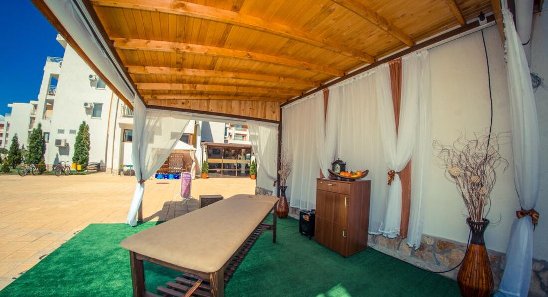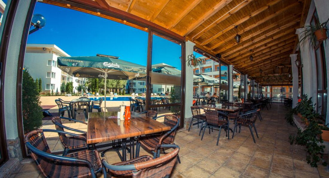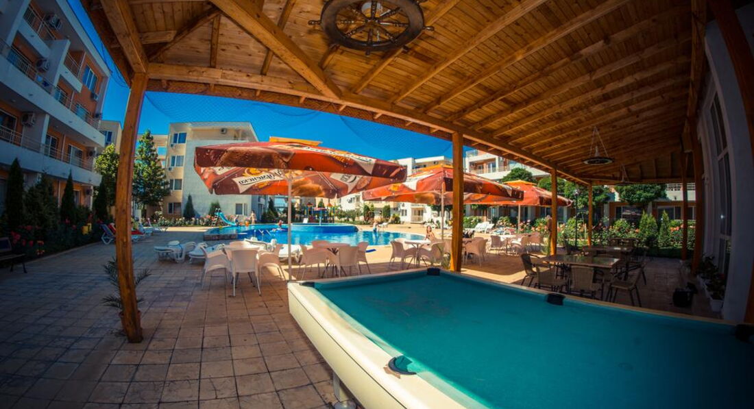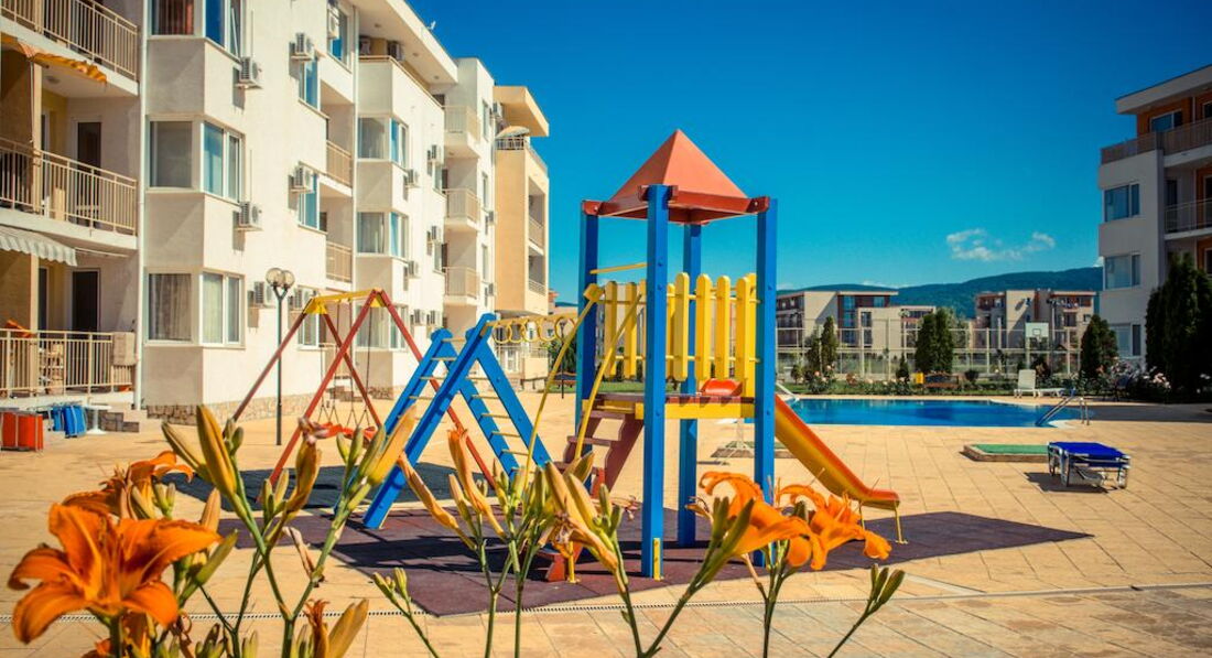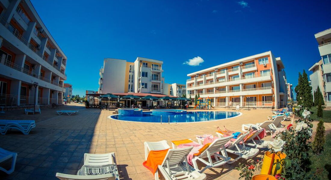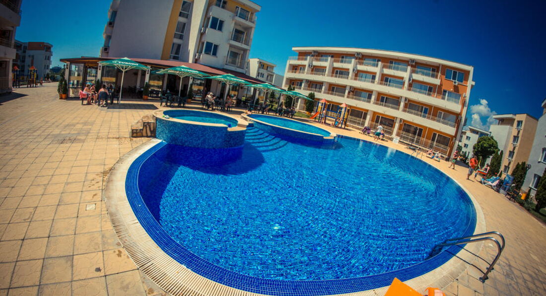 Отдыхали впервые в апартаментах и очень понравилось № 170 корпус В1! В отеле очень доброжелательный персонал,большое спасибо всем!(заселение сразу по приезду в 9.00 часов утра и особенно приятно-отъезд в 18.00,не надо было бродить по улицам) Все вопросы решались оперативно,спокойно.Тихо и спокойно в красивом комплексе(розы,цветы,чистые бассейны)после шумного центра-просто рай.Каждый день ужинали на балконе в полной тишине ,наблюдали как садится солнце! Да,весьма неприятный момент,перебежать дорогу,но потом привыкли,до моря шли минут 15. Теперь о Болгарии-в целом понравилось,но немного грязные пляжи,нет душевых,туалеты платные и Очень Дорогие Лежаки !15 евро комплект на двоих!! Но зато есть бесплатные зоны,для любителей горячего солнца и песочка. Ездили в Румынию-очень понравилось,весьма неожиданно,рекомендую. Турфирма Санимат( хороший гид Евгений и отели в парке Синая возле монастыря. Причем все ехали в одном автобусе,кто купил у отельных гидов,только дороже,понятно людям было обидно. Самостоятельно ездили в Поморие(санатории),в Несебр ходили пешком. Очень понравился Созополь(в следующий раз поедем туда),но если Солнечный берег-то только Несебр Форт . Сограждане весьма нелестно отзывались об отелях такого ценового диапазона.