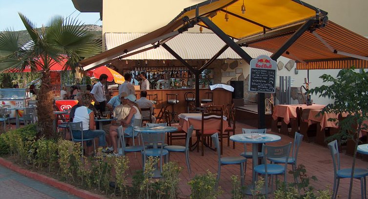 Бари та ресторани: головний ресторан розрахований на 160 осіб (критий, з кондиціонером, дитячі стільці), бар біля басейну (07:00–21:00), диско-бар (21:00–04:00).
