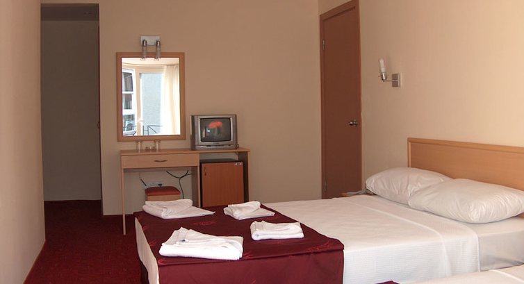 Отель - не супер, но жить можно. Как на три звезды - супер! Пляж на первой линии, чистый. На територии зажигательная дискотека. В номерах нормально, но не уберают. Мусор мы выставляли в коридор. Мой всем совет: берите с собой спиртное( месным вы не напьётесь)!!!!! Я если еще туда поеду, обязательно возьму с собой каких-то балычков. Мяса там не хватает. Нам давали овощи, морскую рыбу, потроха куриные, редко - курятиу. И все в подливах(((((((( В конце отдыха мы нашли дешовое кафе, где можно было поесть что-нибуть по-лутше. В общем хорошо. Я еще поеду.