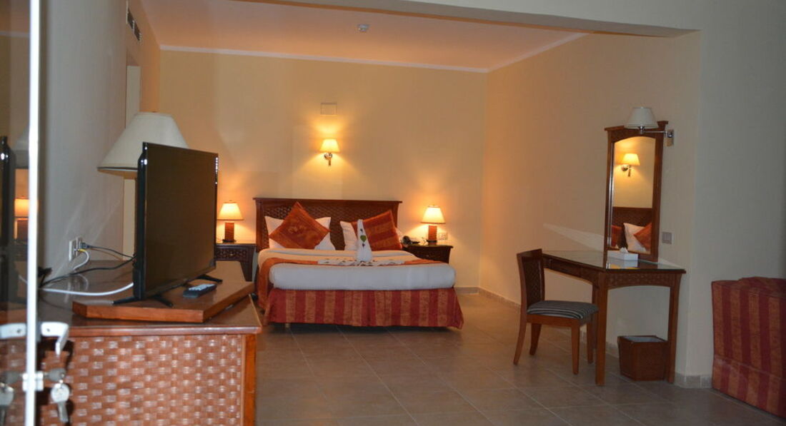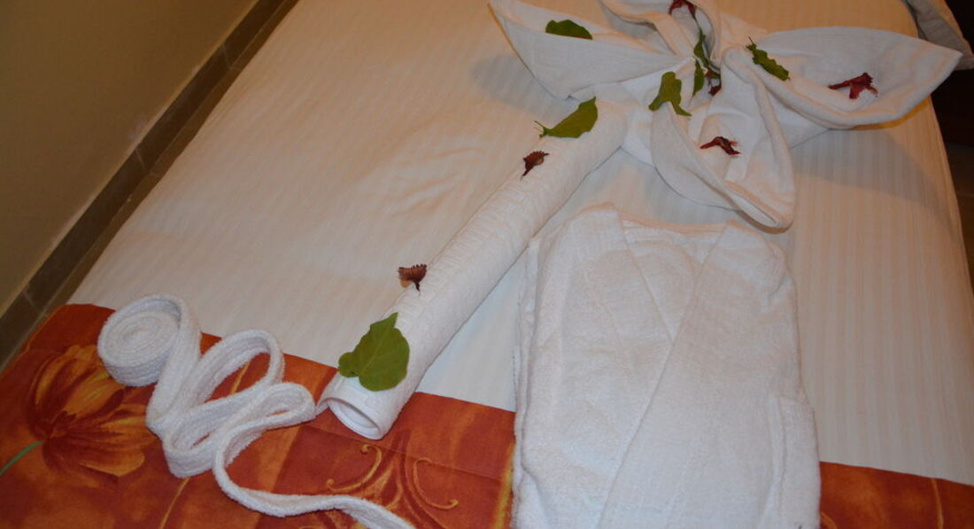 Отдыхали с мужем в этом отеле 10 дней. Читали отзывы и, в принципе, знали на что шли, но оказались приятно удивлены. Приехали около 10 вечера, нас сразу поселили. Номер был чистым, все работало, хотя потом выяснилось, что не всем так повезло, кому-то попалось грязное постельное, у кого-то не было туалетной бумаги. Убирали каждый день, бумаги всегда было 2 рулона, полы помыты, в т.ч. и на балконе, полотенца меняли 3 раза(первый раз я попросила, потом сами). Крутили лебедей, сердечки. За уборку оставляли чаевые, то 1 доллар, то 5-10 фунтов, то вообще ничего, но всегда был порядок. Сейфа не было, сказали утром принесут, но так и не принесли, а мы и не напоминали. Смысл того сейфа, если его можно унести, документы и деньги оставляли в чемодане, ничего не пропало.