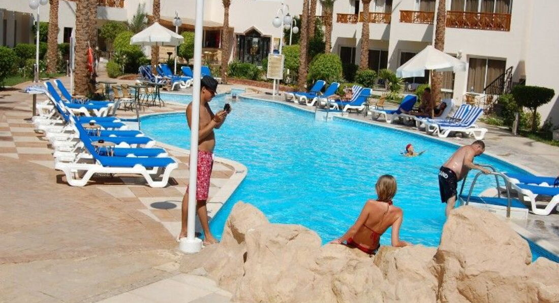 Отдыхать поехали вместе с подругой на 10 дней. В Египте не впервые, до этого тоже были в отелях 4*, есть с чем сравнить. Приехали в отель после 19.00. Заселили нас мгновенно. Номер большой, много мебели, все аккуратно. Плохо только, что нет балкона, нам он необходим, чтобы вещи сушить. Как оказалось позже, у соседей тоже нет балкона, да еще и вид на свалку. Поэтому мы не особо расстроились, просто вынесли на улицу стул и сушили все на нем. Сразу заметили, что нет полотенец, туалетной бумаги и отваливается кран. Сообщили на ресепшен, у нас спросили номер комнаты и сказали, что полотенца принесут только завтра при уборке. Утром перед морем ходили просить полотенца на ресепшен, девушка сказала обратиться к полотенце-менеджеру, пошли искать его, в указанном месте его не оказалось, сходили на море со своими. Позже нам дали два пляжных полотенца, решили их оставить в номере, и не зря, в номер нам дали два маленьких полотенца явно не для тела. Поэтому на пляже пользовались своими, в номере пляжными. Номер убрали два раза в первые дни, потом приходили либо когда мы пришли с моря перед обедом и моемся, либо не приходили вообще. К концу отдыха в номере был целый пляж. Туалетная бумага так и не появилась, пришлось брать в общественном туалете, благо там много рулонов всегда. В один из дней капало с потолка, сообщили на ресепшен, к нам так и не пришли, капать перестало. Затем через пару дней снова лужа на полу, сообщили повторно, к нам пришли работники, покрутили кран в ванной, постучали по потолку, капать перестало. Территория маленькая, довольно уютная. Есть терраса и место для столов на улице с баром, но ничего не функционирует, а жаль. Анимации нет никакой, развлекали себя сами, ездили на экскурсии и гуляли. Бар работает с 10 до 22. Закрываются они еще в 21.55, а вот открыться вовремя не могут, до 12 можно даже не пытаться взять попить. Некоторые бармены не понимают, что ты от них хочешь, например, вместо джина дают лед. Еда неплохая, если приходить к открытию ресторана. Напитки наливать надо самостоятельно из бутылок. Молока часто не было, кофе растворимый, чай только черный в пакетиках. На завтрак есть почти нечего, йогурта, выпечки и блинов нет. Только хлопья без молока и мини-омлет. На обед всегда фри, мясо, птица, рыба. На ужин запеканки, макароны, те же мясо, рыба, птица. Фруктов мало: безвкусный арбуз и дыня, пирожные вкусные. В обед и ужин голодными не ходили. Но вот перекусов нет никаких. Могли бы и поставить на стол возле бара то, что осталось. Пляж находится близко, мест на лежаках всегда хватало, несмотря на то, что ровно в 10.00 ежедневно приезжали арабские семьи и весь день находились на пляже нашего отеля. Море грязное, мы уходили плавать на пляж другого отеля, там почище и рыб побольше, есть что посмотреть. На пляже особо не пристают, экскурсии и массаж не навязывают. Замотанные с головы до ног женщины презрительно смотрят, а их мужчины захлебываются слюной. Бесплатного бара на пляже нет, приходилось ходить в отель попить. В один из вечеров был ужин на улице, мы до сих пор не поняли в честь чего, столы расставили вокруг бассейна, была еда на гриле, танцы живота. Вот бы так каждый день. Отелю явно не хватает хорошего управляющего, можно такую конфетку сделать! Для того, чтобы просто есть и спать, отель подходит замечательно, а так 3 с минусом и не больше.