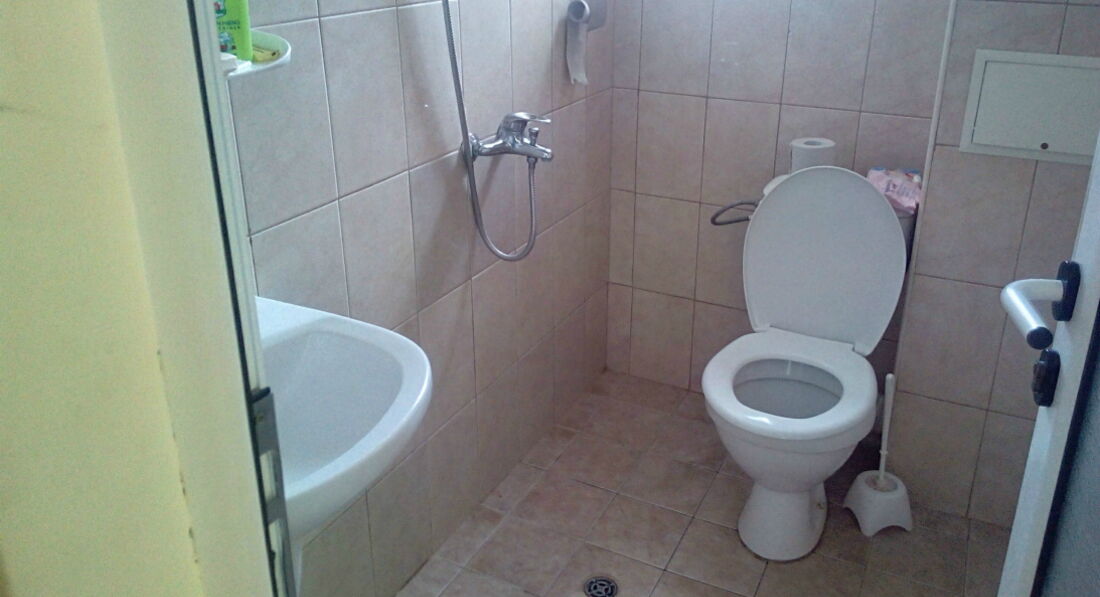 Санузел как обычно в Болгарии, без кабинки, а просто со сливом в полу. В первый раз когда ездили отдыхать в Болгарию, очень удивлялись, но у них видимо так принято. Не сказать что это мега удобно - но можно привыкнуть.