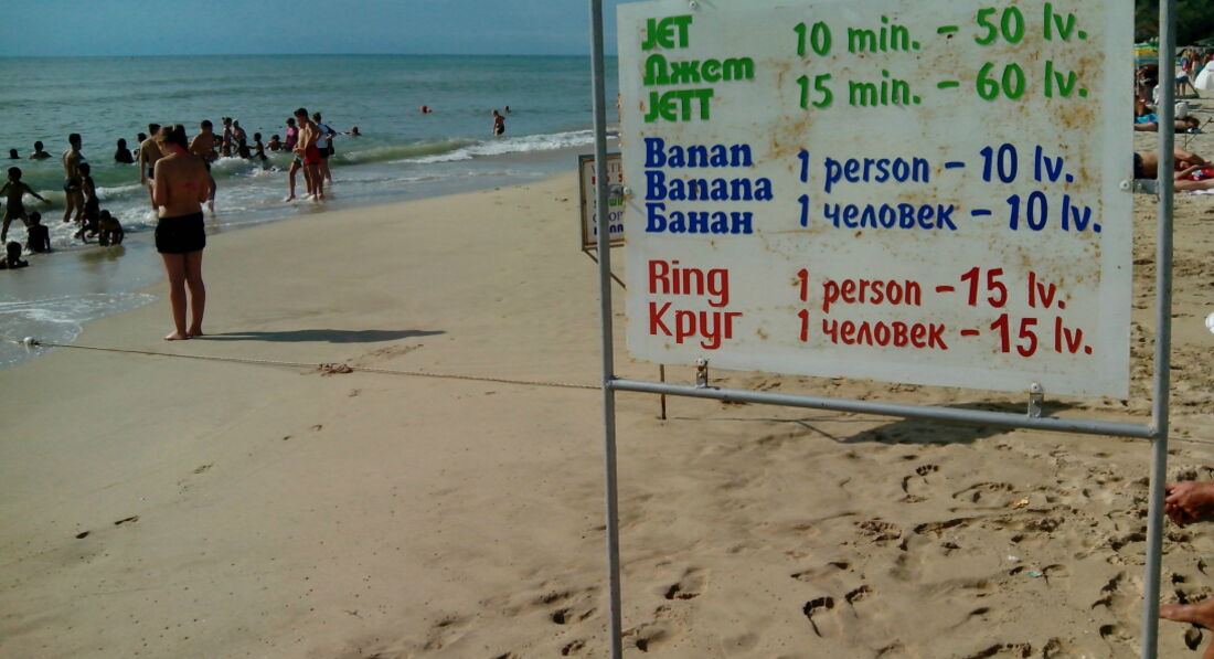 Пляж... Пляж в 700-800 метрах от отеля по центральной улице. Это нас не напрягало. Но придя на пляж уже "печалька". На пляже огромное количество кафешек, которые пораставляли зонтики и шезлонги за плату. Зонтик- 6 лев, шезлонг- 4 лева. Для Болгарии это не дешево, в Европе и то дешевле. Конечно есть и бесплатные пляжи, где можно просто постелить полотенце и отдыхать на песочке. Пляж широкий и чистый, с пологим песчаным входом без живности. Но Черное море оно самое обычное и нас не удивило. Если хотите сэкономить, возьмите с собой зонтик, он вам пригодится. Хотите тишины, тоже не выйдет.Очень много людей «А-ля Крымское ЮБК».