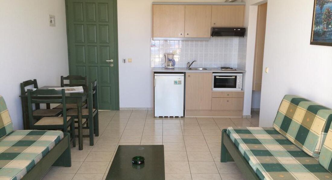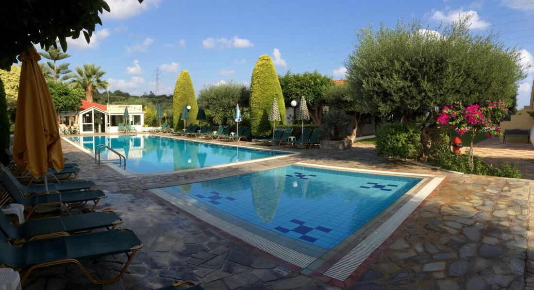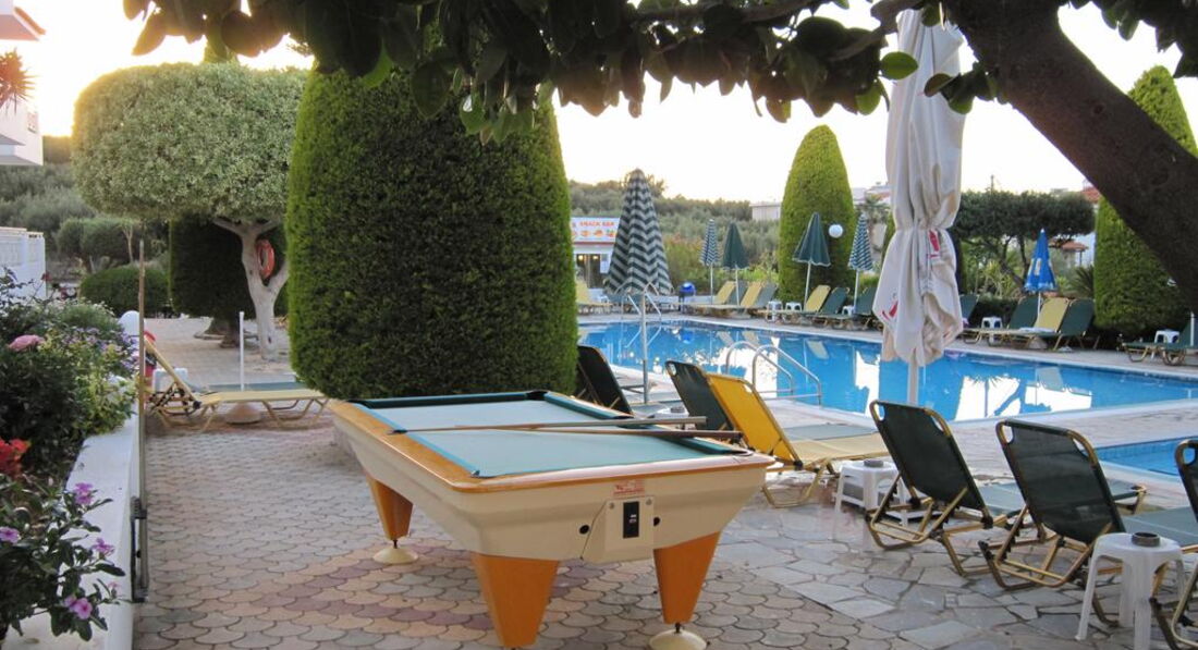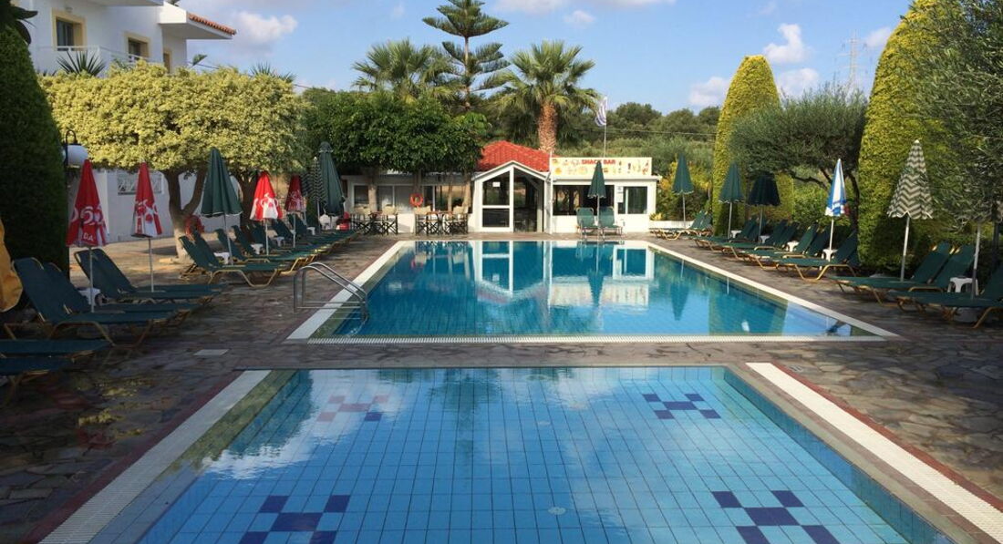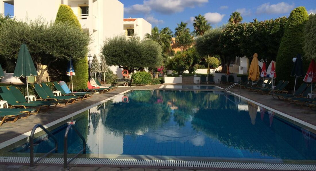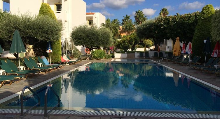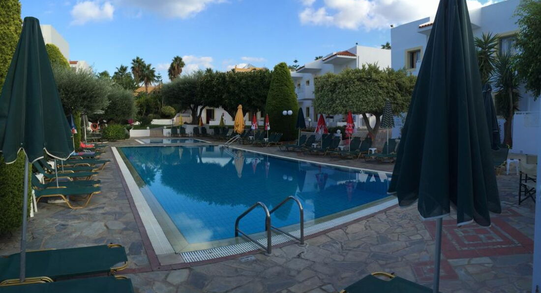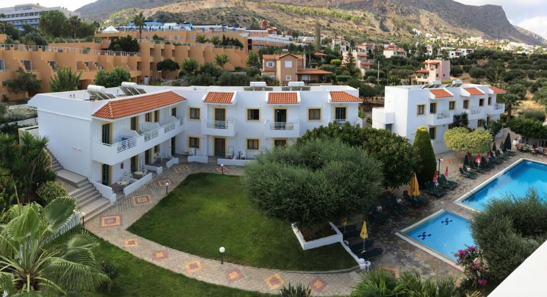 Маленький апарт-готель. Усі номери з обладнаною кухнею. Всього за кілометр від активного центру курортного життя та нічних розваг – м.Херсоніссос. За 300 м від готелю розташований аквапарк готелю STAR BEACH VILLAGE & WATER PARK. Рекомендуємо для молоді та самостійних мандрівників.