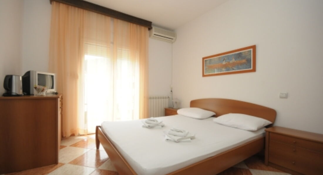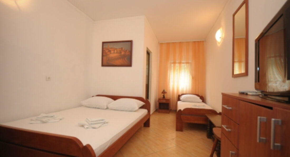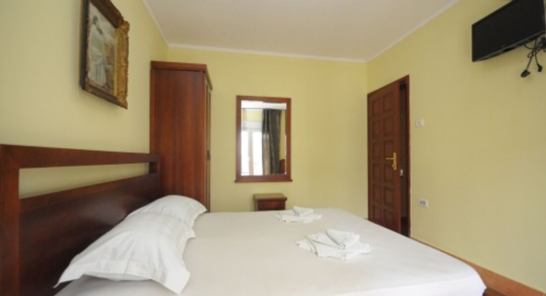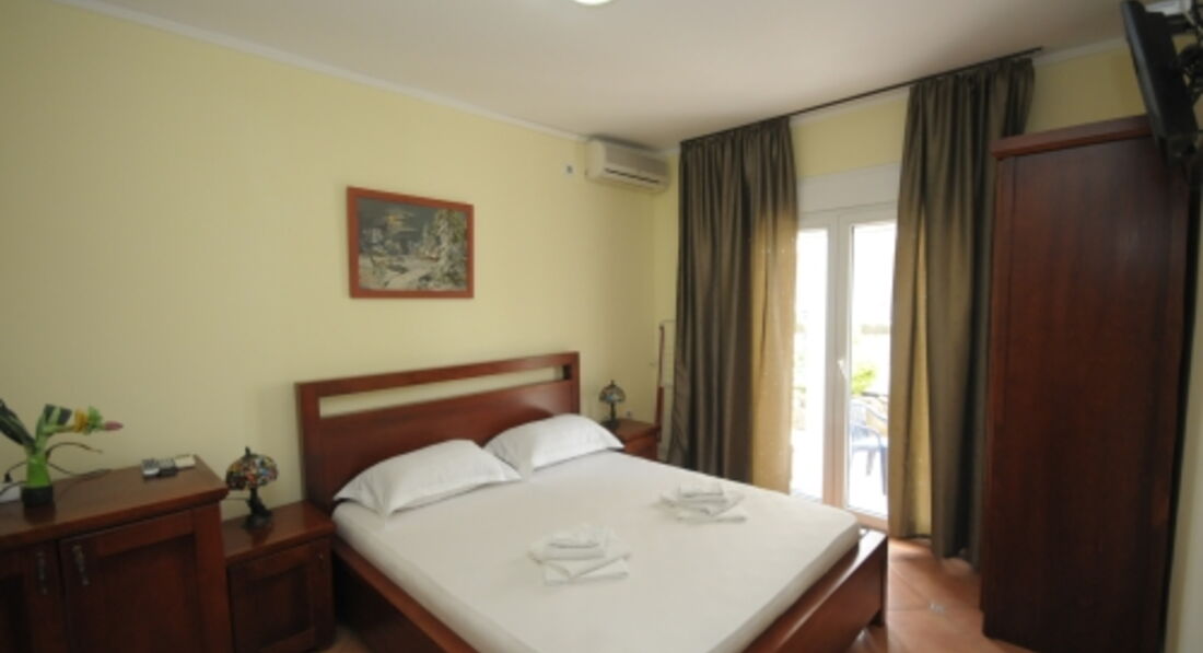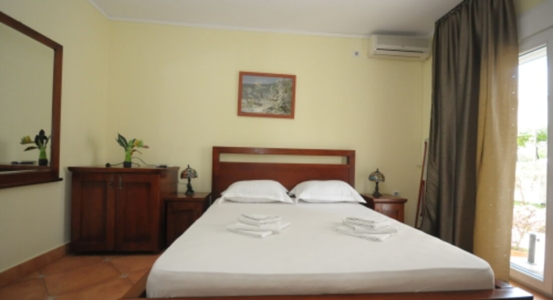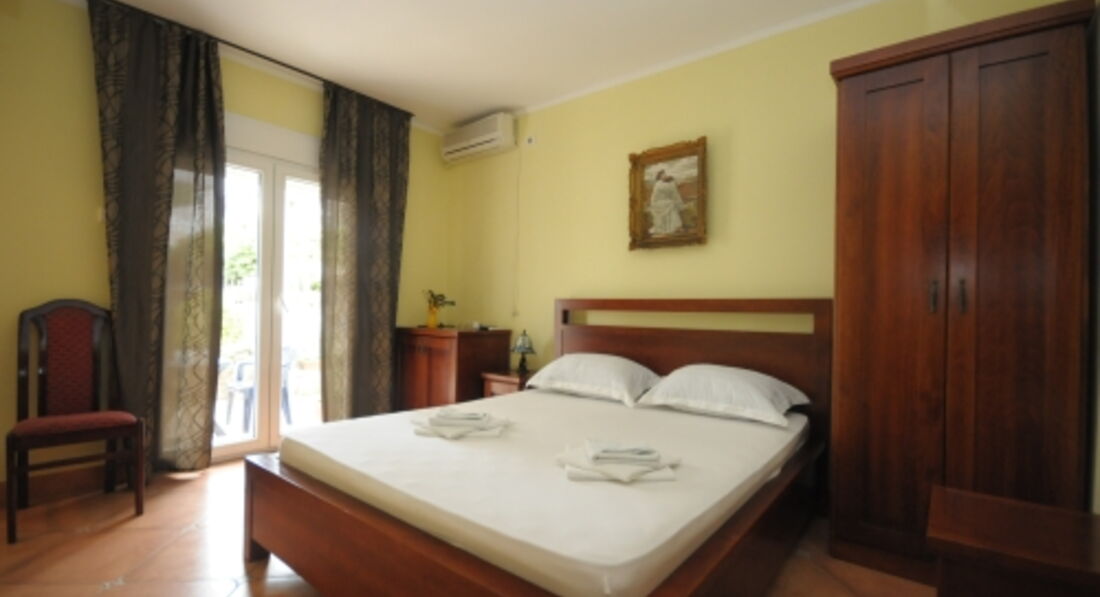 Double Room: двоспальне ліжко (або 2 односпальні), вихід на терасу (загальну або окрему). Вид на море немає.