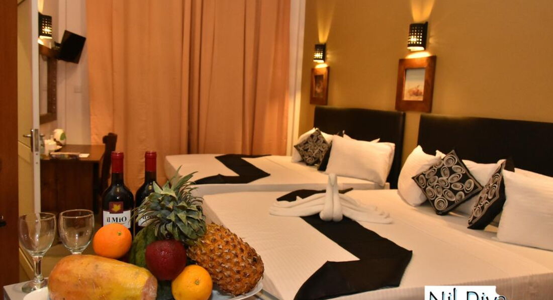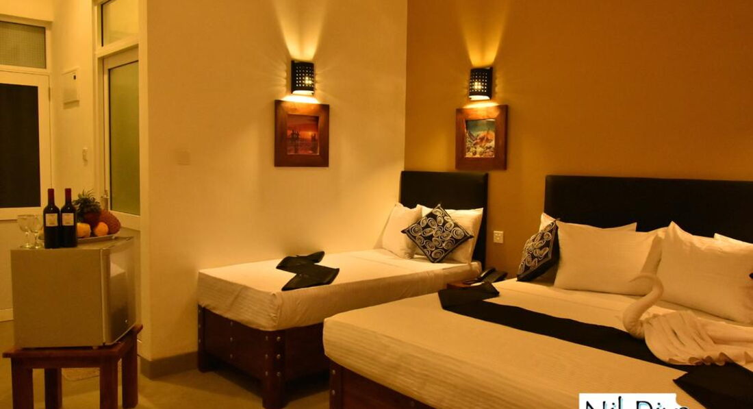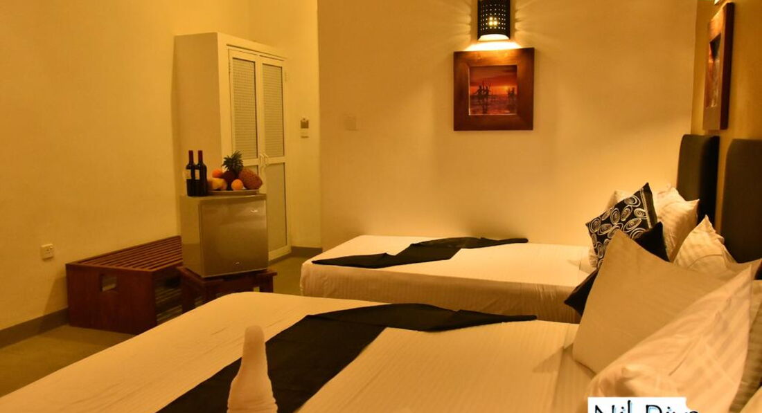 Курортний готель Nil Diya Beach з садом та баром розташований у місті Матара. Цей 4-зірковий готель, побудований у 2017 році, розташований за 9 км від буддійського храму Вехерахена і за 5 км від форту Матара. Складається із двох 3-поверхових будівель (є 1 ліфт). Готель відмінно підходить як для молодіжного, так і сімейного відпочинку.
