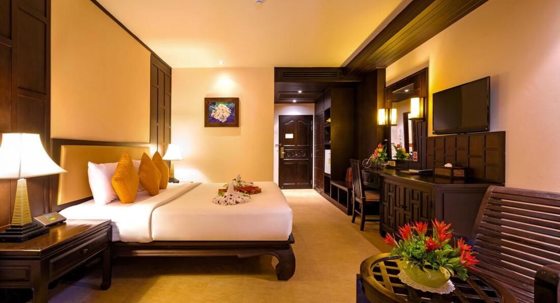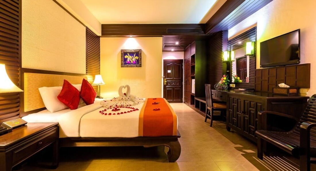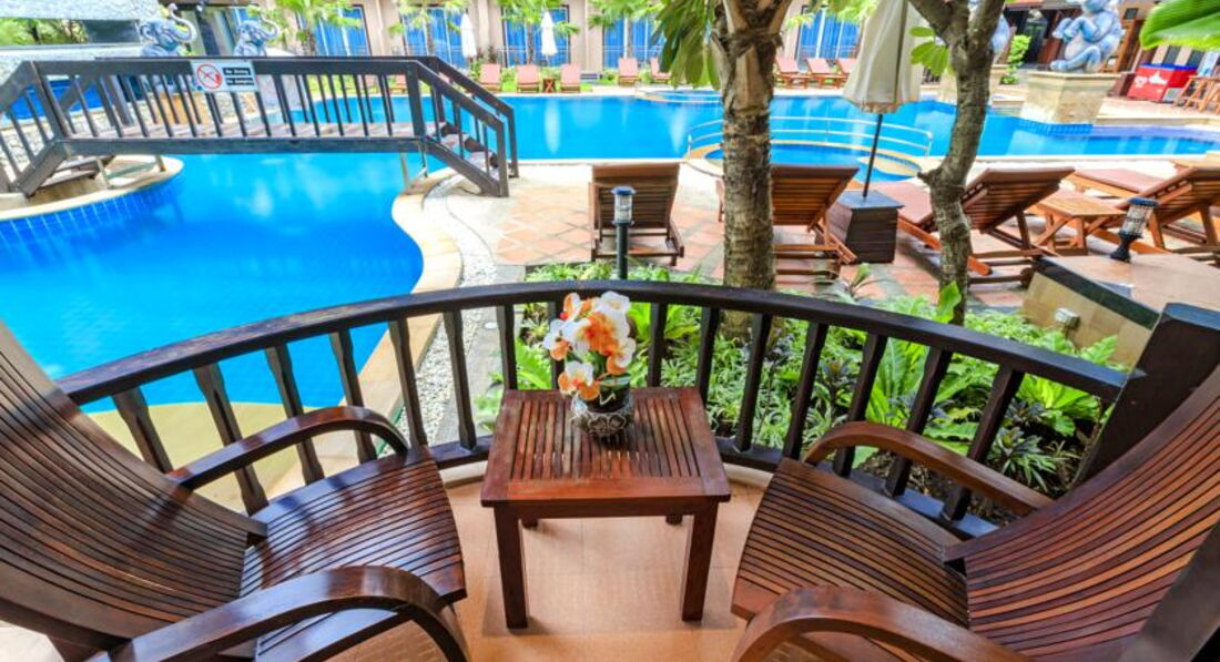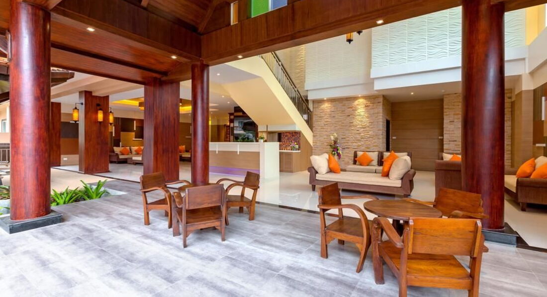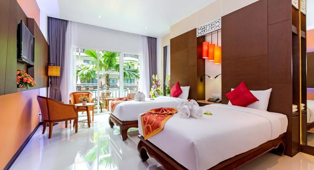 Отдыхали в этом отеле январь-февраль. На Пхукете первый раз. От аэропорта примерно час. Пока крутили головой, смотрели по сторонам, слушали гида, включали местные SIM - не заметили как приехали. Первое, что насторожило, что отель около дороги, вокруг стройка, под мостиком речка-вонючка. Но когда зашли на рецепшин, все это скрылось за тропической зеленью, которой вдоволь на территории отеля. Это один из немногих отелей, у которого есть своя зеленая территория, бассейн просторный. Приняли нас быстро, номер был свободным. Швейцар подхватил сумки и проводил в номер. На чай не просил, но дали ему 1 доллар. Комната №216, 2 этаж. Номер хороший, но..... вид из окна на стену, до которой можно дотянуться. Захотели поменять, но пришлось бы доплачивать 500$. Плюнули на это дело и закрыли шторы. В номере не работал сейф, но по просьбе, сделали в течение 15-20 минут. Весь персонал говорит на английском. Питание очень скудненькое. После 10 часов еда заканчиавется и можно только пить сок ЮППИ - Фрешей нет.